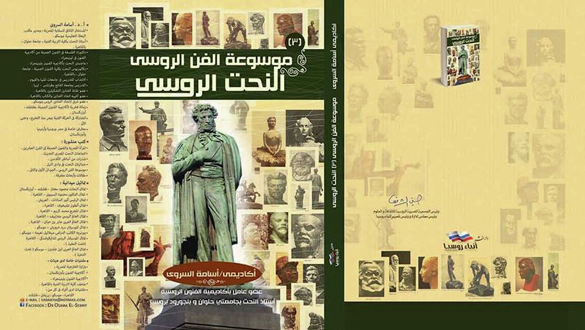 ويتحدث المستشار الثقافي المصري السابق في روسيا وأستاذ النحت بجامعتي حلوان المصرية و"بلوجورود" الروسية، الدكتور أسامة السروي عن موسوعته، في تصريح خاص لوكالة "سبوتنيك" الروسية، قائلا إنه من المقرر صدورها، عن دار نشر "أنباء روسيا"، في 14 مارس/ أذار المقبل، لافتا إلى أنها مكونة من أربعة أجزاء من تأليفه الخاص.