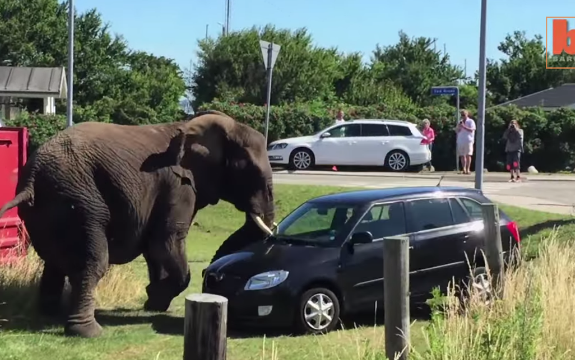 فيل من السيرك الدانماركي يهجم على سيارة، ويُرعب الناس بعد أن ضربه صاحبه، كما أفاده التقرير. فهل "يفلت منه" صاحبه؟ وهل "تنجو" السيارة؟