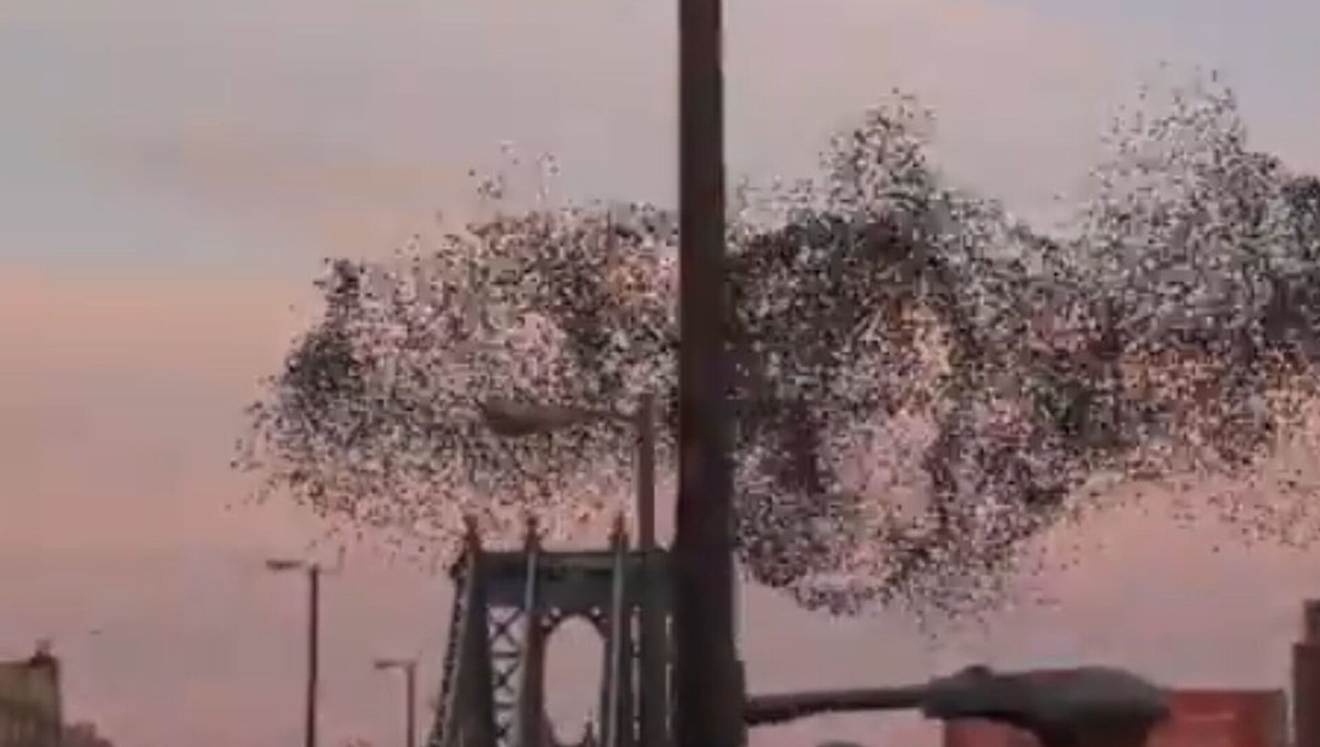 تم رصد وتصوير ظاهرة مثيرة للاهتمام فوق آراضي مدينة نيويورك الأمريكية بمشاركة عصافير غريبة سوداء اللون ترسم وجه الرئيس الروسي فلاديمير بوتين في السماء.