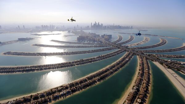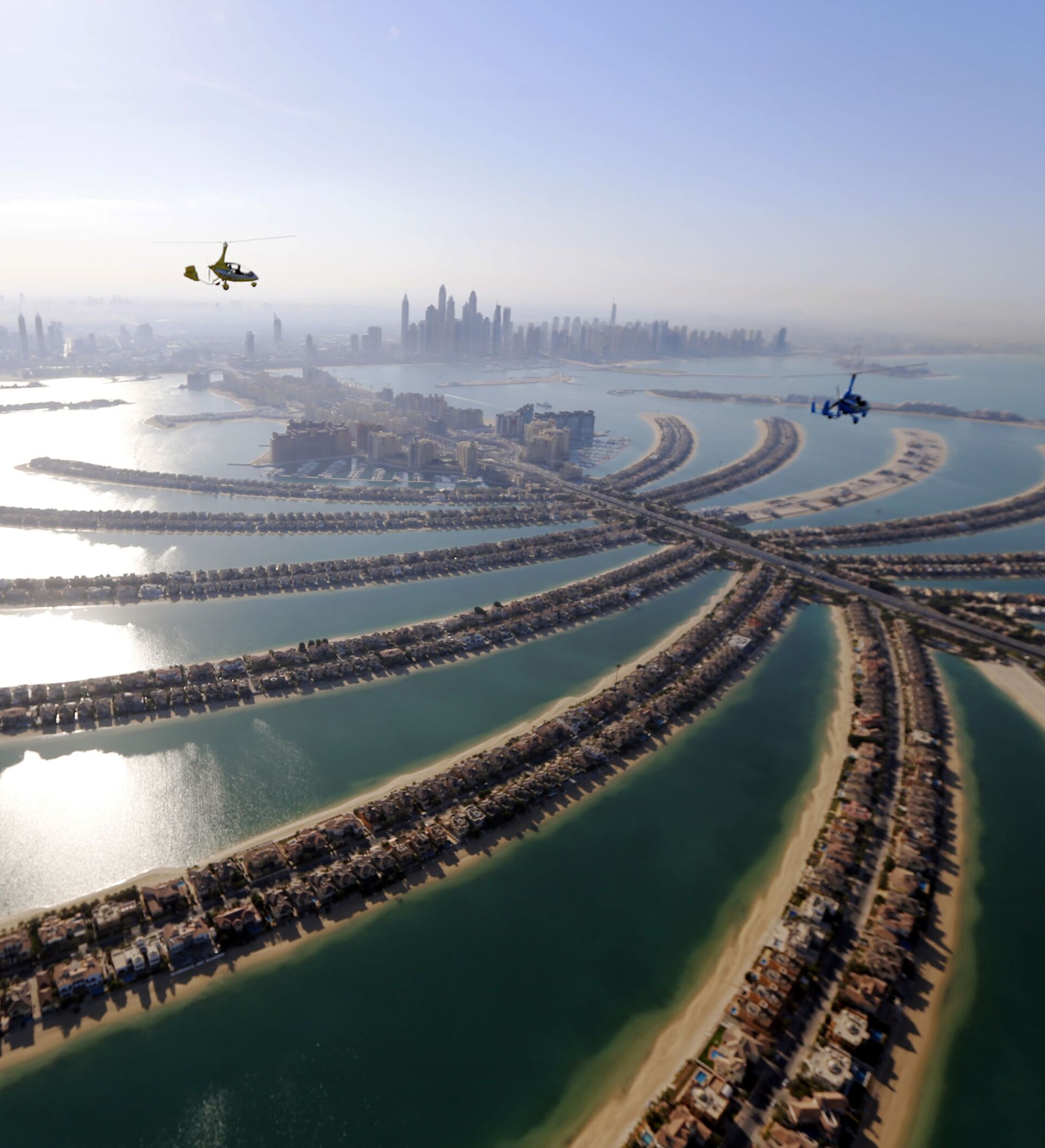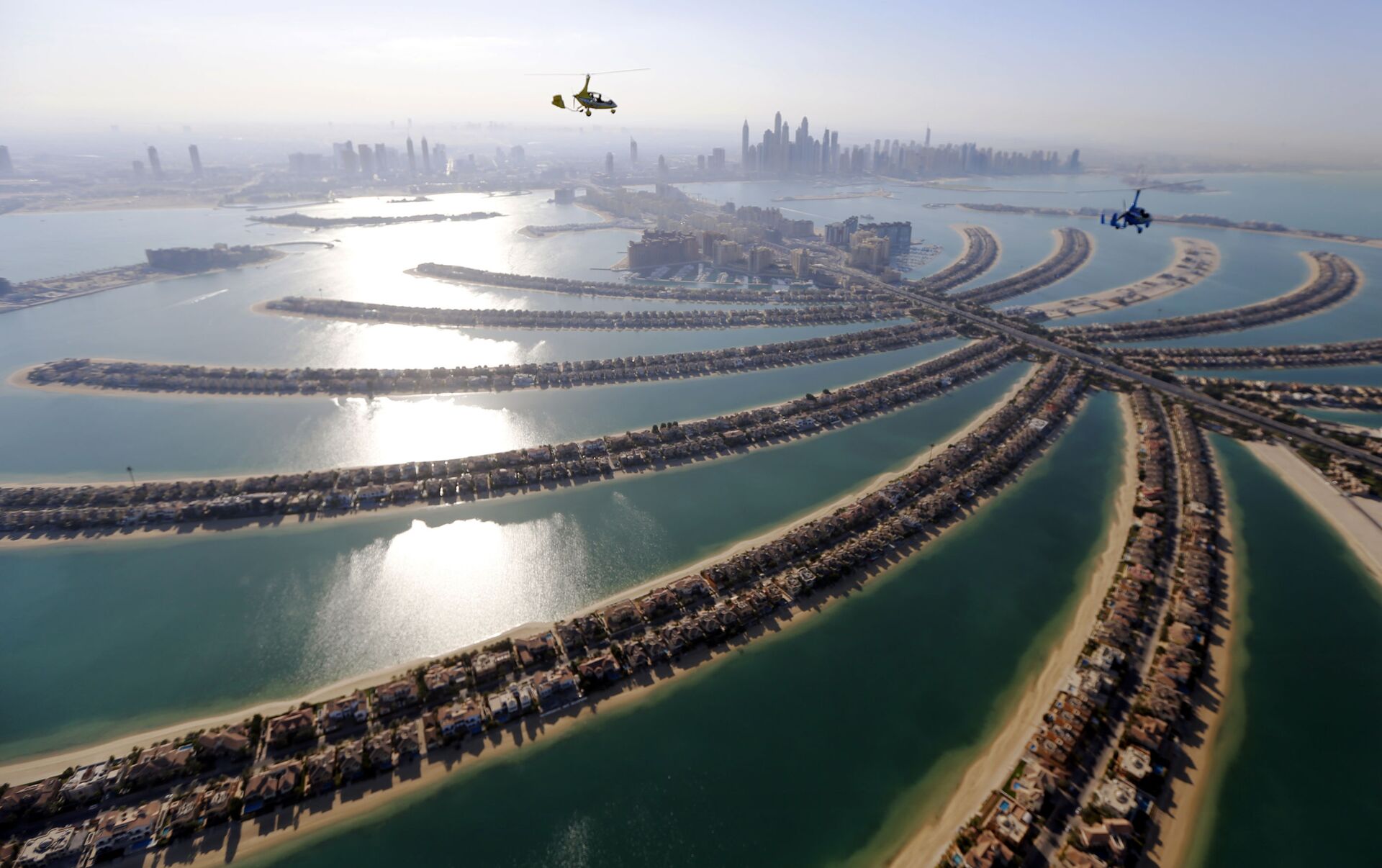 مروحيات "جيروكوبتيرز" الصغيرة تحلق فوق عاصمة الإمارات العربية المتحدة دبي، وذلك خلال "الألعاب الجوية العالمية" لعام 2015 - الصورة: 9 ديسمبر/ كانون الأول 2015.