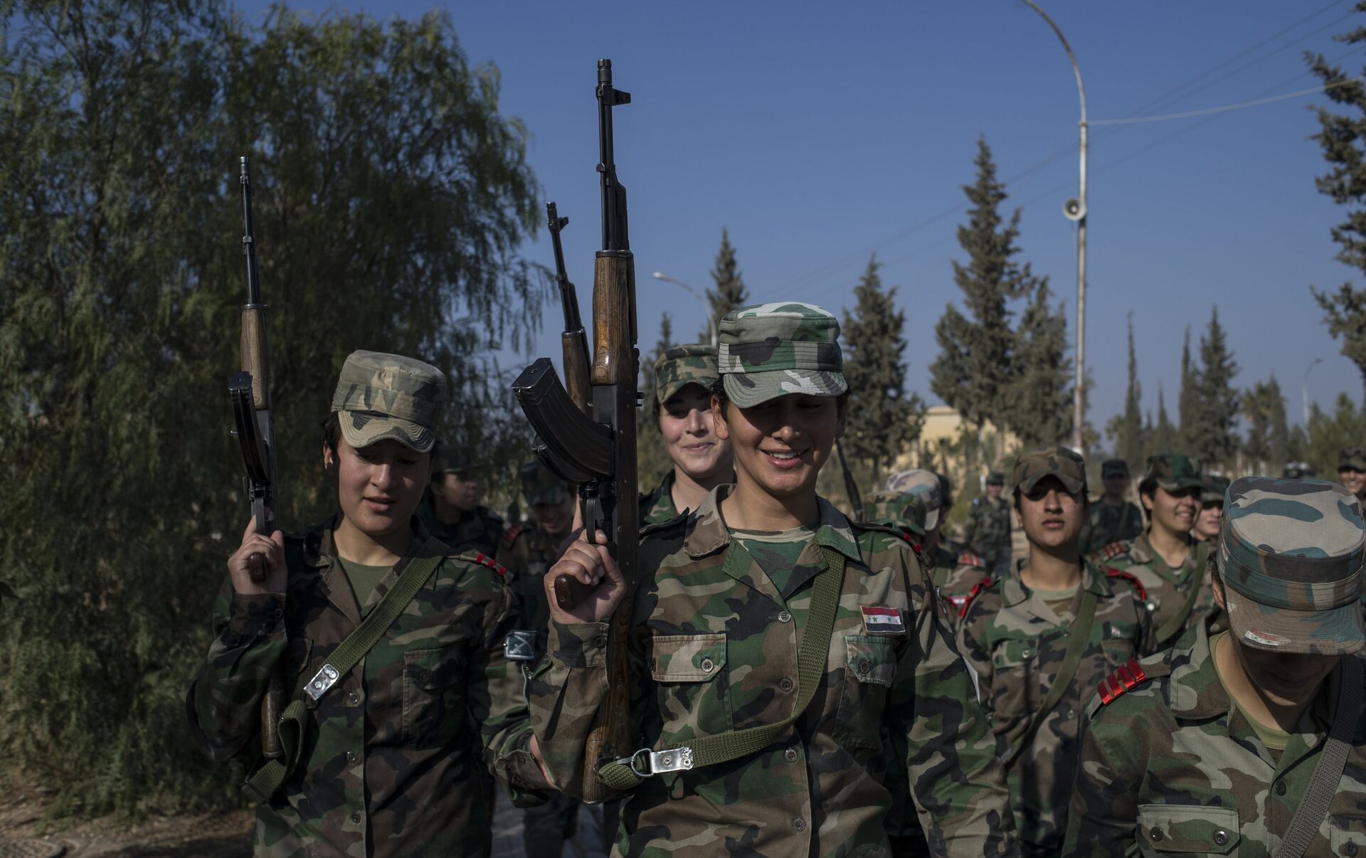 تدريبات الفتيات فى سوريا فى الأكاديمية العسكرية
