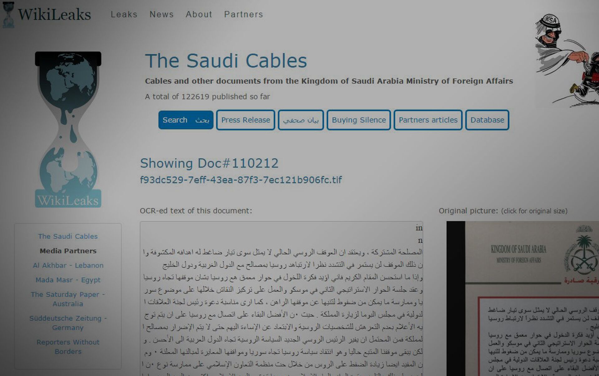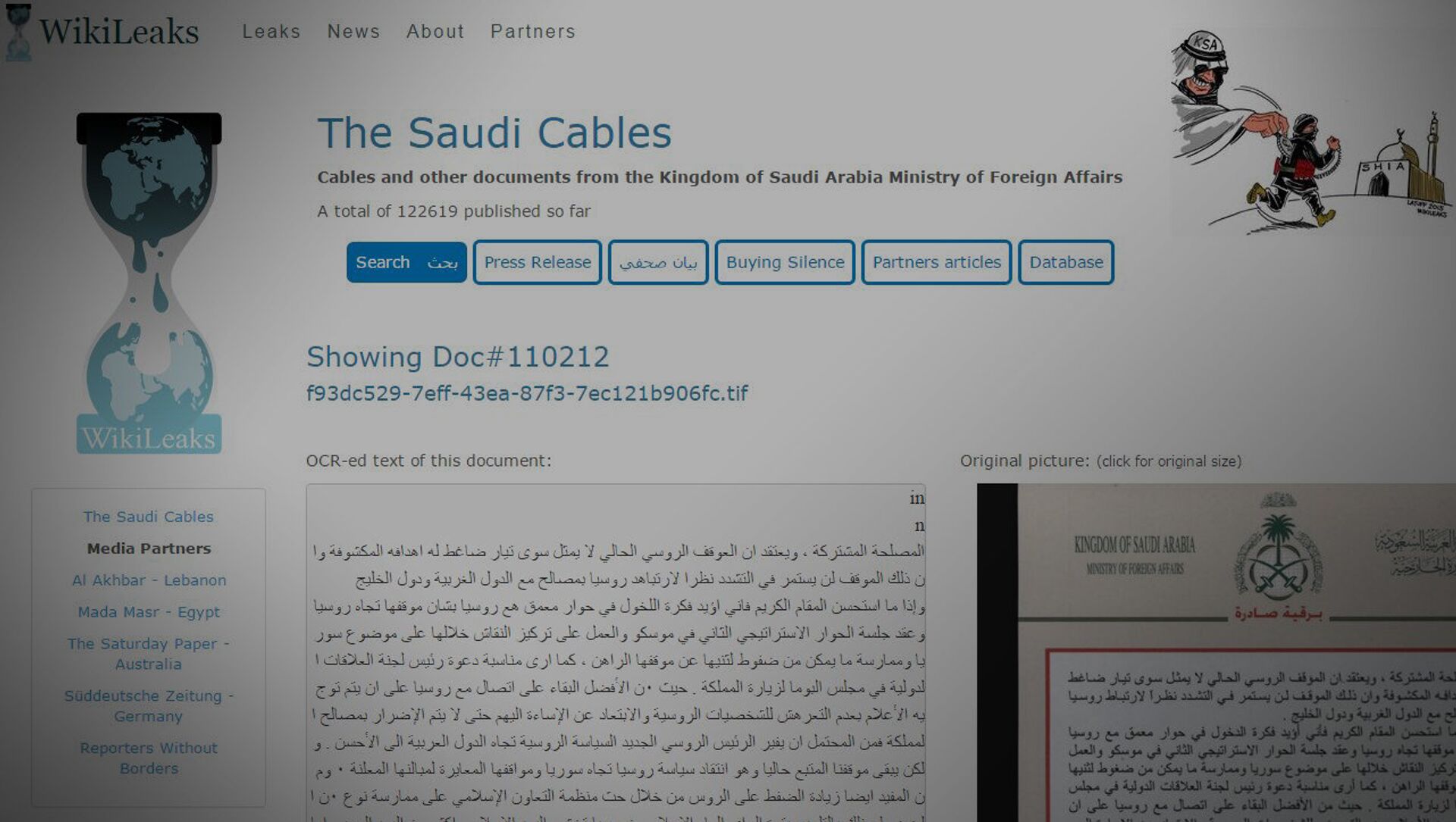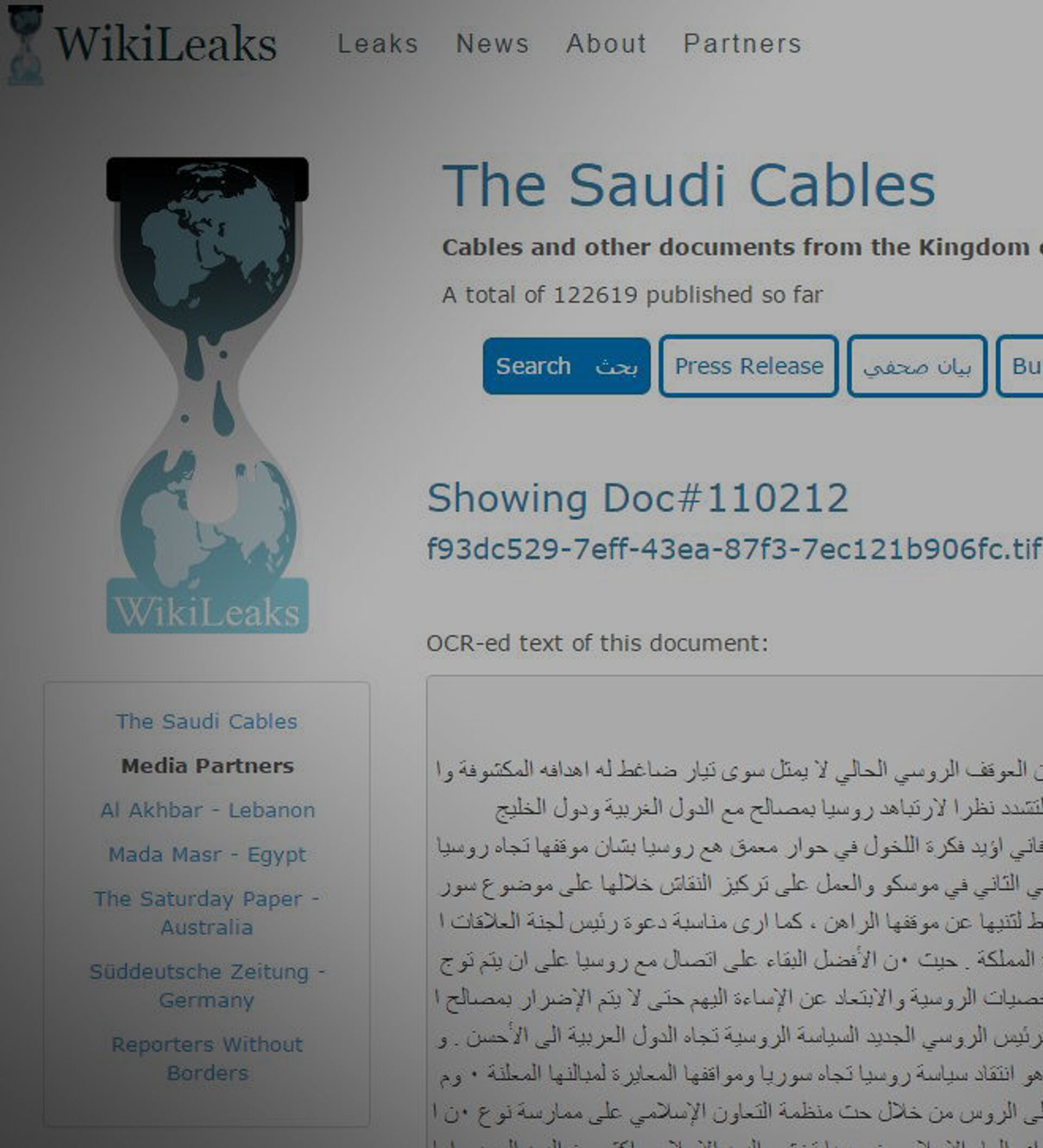 على خلفية التوتر في العلاقات السياسية بين الدول حول الأزمة السورية، تسربت "برقية صادرة" عن وزارة الخارجية السعودية، جاء فيها تصريح بأن المملكة ستقوم بإجراءات للضغط على روسيا عبر منظمة التعاون الإسلامي.