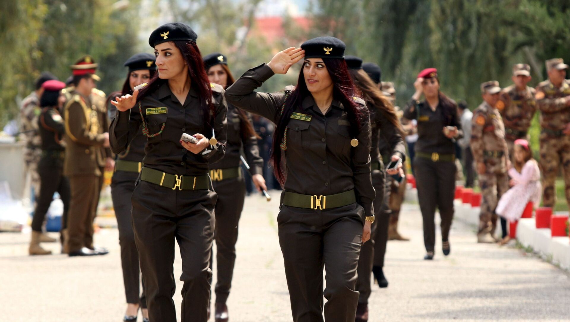 © REUTERS / Ari Jalal نساء البشمركة الكردية أثناء مراسم تسليم شهادات دبلوم أكاديمية الشرطة في العراق، 30 مارس/ آذار 2016. نساء البشمركة الكردية أثناء مراسم تسليم شهادات دبلوم أكاديمية الشرطة في العراق، 30 مارس/ آذار 2016.
