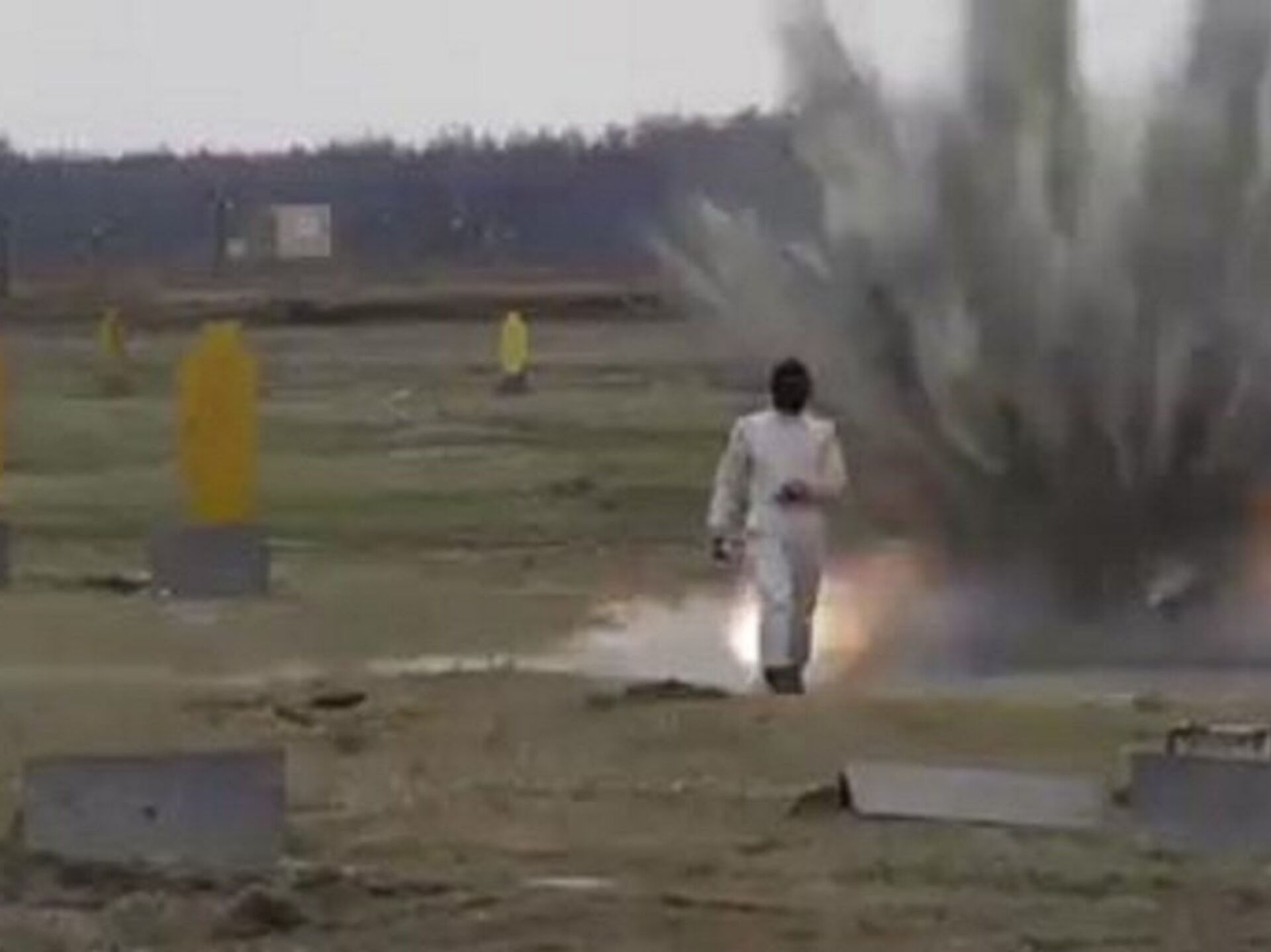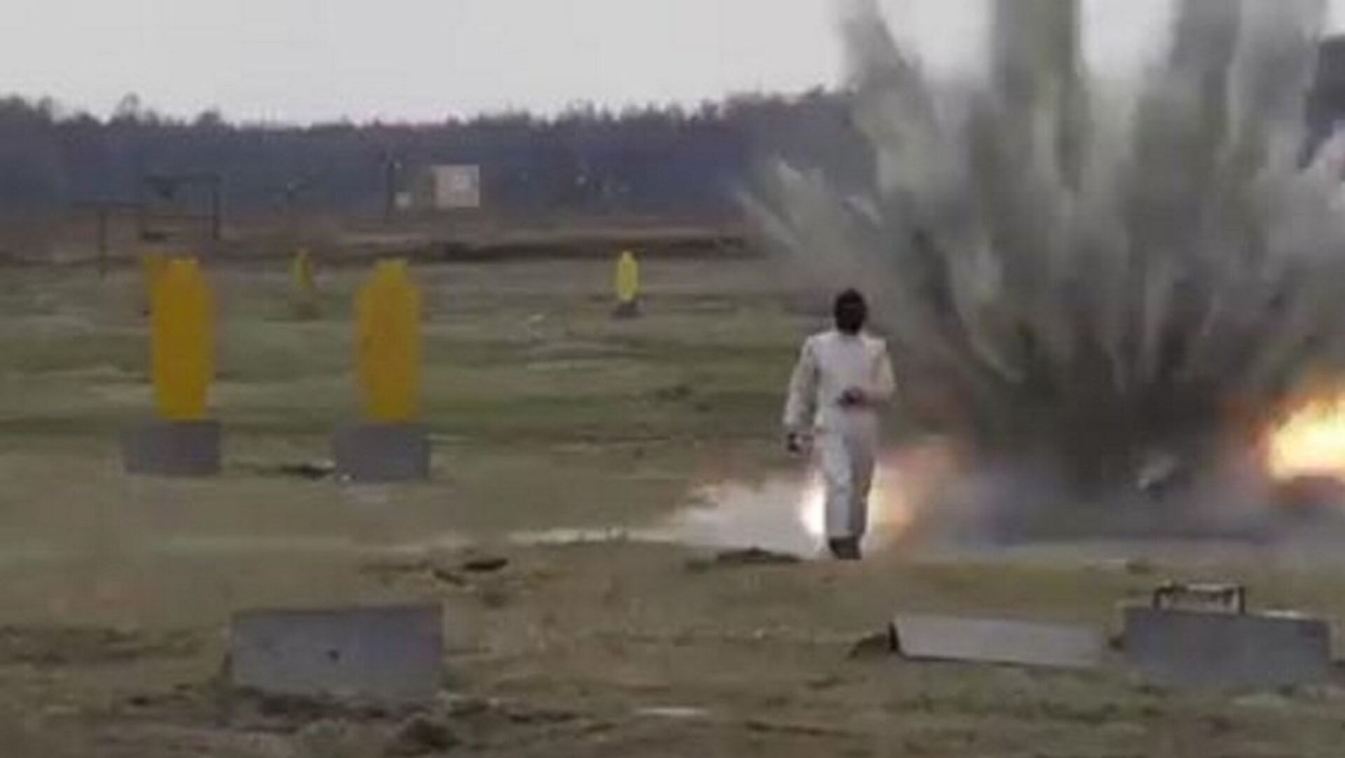 وتظهر في الفيديو فتاة مرتدية بزة واقية تمشي فوق "حقل ألغام" ومن ثم تمشي "عبر اللهب".