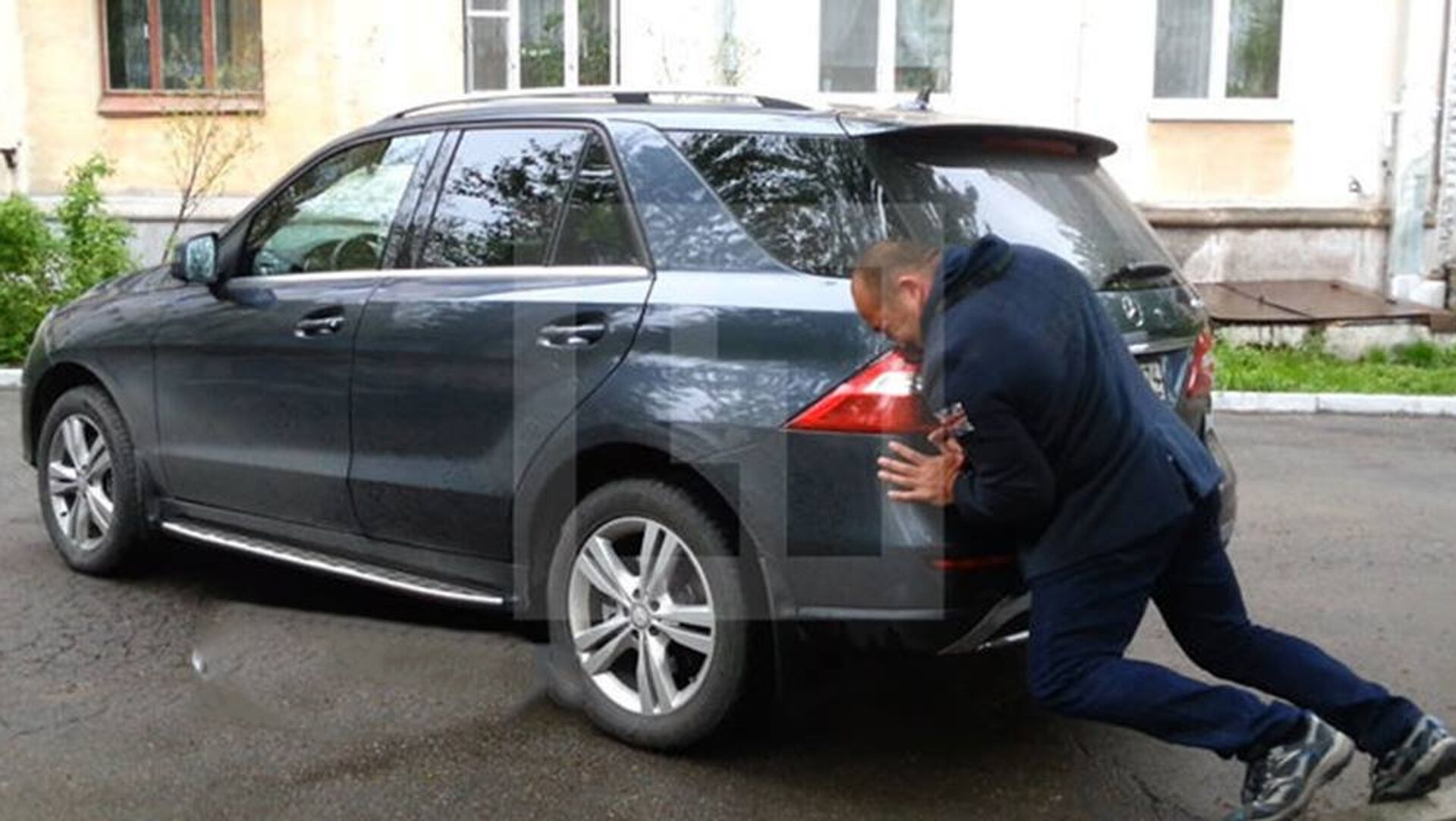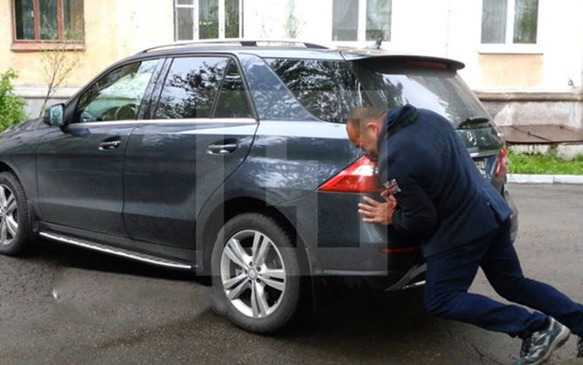 قام بإبعاد سيارة جيب "مرسيدس-بينز" يدوياً من أمامه، لأنها كانت تعرقل طريقه.