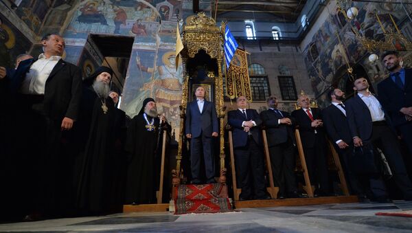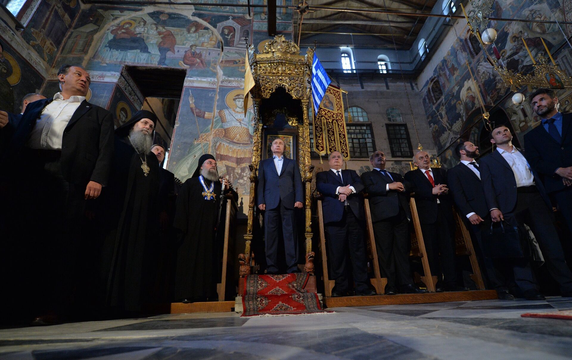 12:31 GMT 29.05.2016 (تم التحديث: 11:53 GMT 18.02.2022) زار الرئيس الروسي فلاديمير بوتين، في اليوم الثاني من زيارته لليونان، السبت، جبل آثوس، أحد المواقع المقدسة للكنيسة الأرثوذكسية، حيث قام بوتين بزيارة إلى كنيسة السيدة العذراء، وجلس على عرش الأباطرة البيزنطيين.