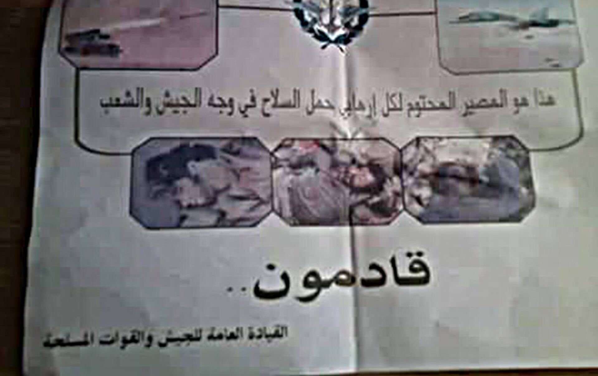 من جهة ثانية، قام الطيران الحربي السوري، اليوم "الثلاثاء"، بإلقاء مناشير ورقية فوق مدينة الرقة وريفها، المعقل الرئيسي لتنظيم "الدولة الإسلامية"، شمال شرقي سوريا، طالبت فيها مسلحي التنظيم بإلقاء أسلحتهم والاستسلام.