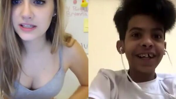 ظهر شاب سعودي ويدعى أبو سن، يتحدث مع فتاة أمريكية تسمى كريستينا، حيث يقوم الشاب الصغير بالحديث معها بطريقة عجيبة. 25.07.2016, سبوتنيك عربي