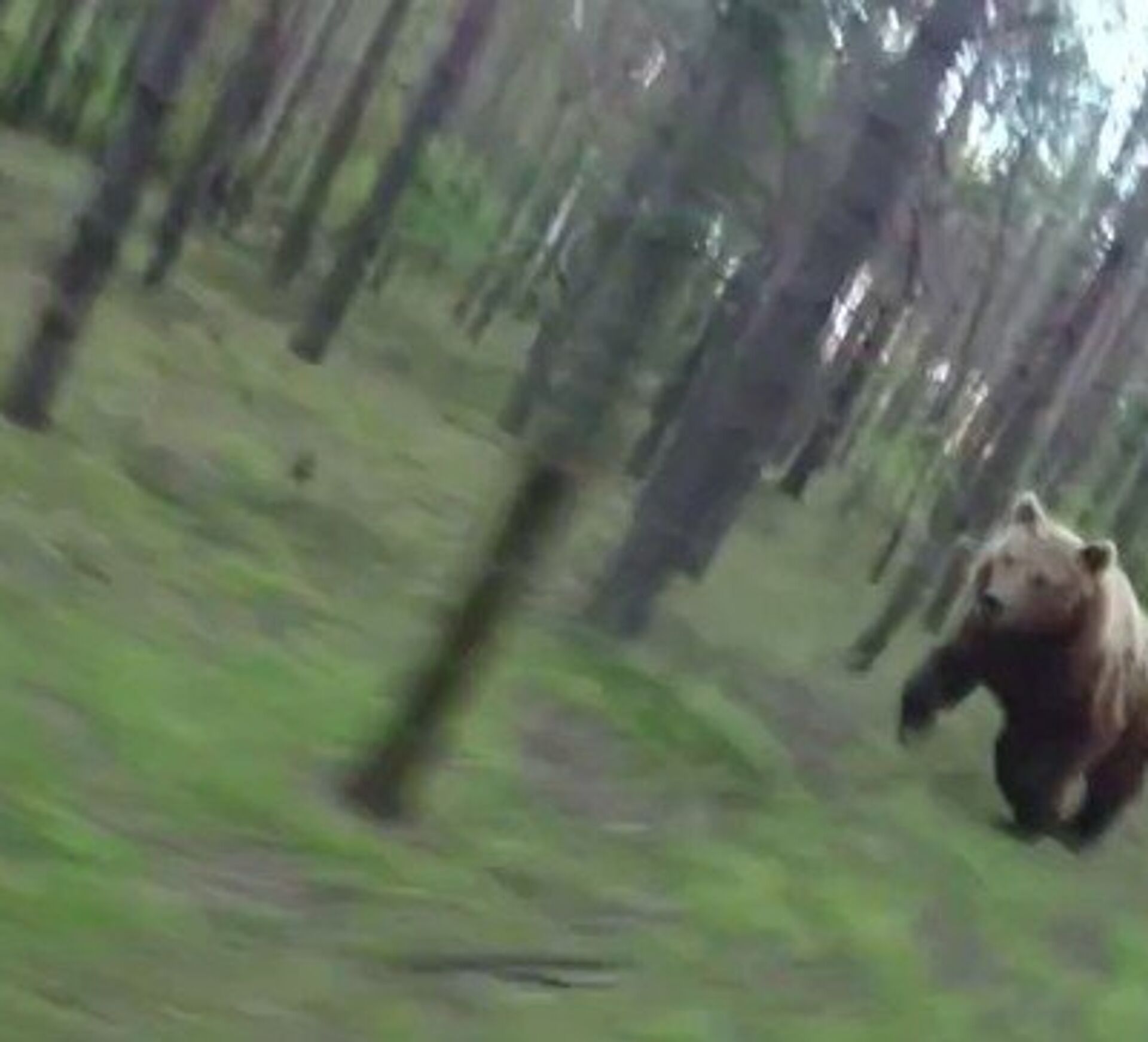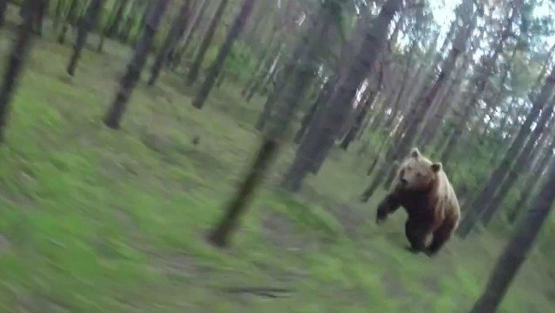 ويظهر في الفيديو قيام الشاب بقيادة الدراجة بسرعة عادية، إلا أنه لاحظ تنفس الدب وبدأ في الإسراع بالدراجة إلى أن وصل خلف شجرة، ثم بدأ الدب يبحث عنه إلا أنه فقد الأمل في النهاية ورحل.