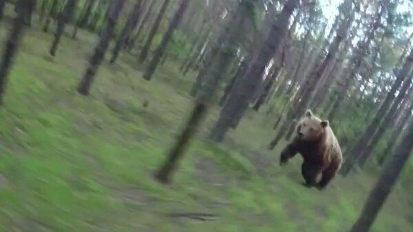 ظهر فيديو على مواقع التواصل الاجتماعي الروسية يظهر قيام دب روسي ضخم بمطاردة شاب يركب دراجة في الغابة ومثبت كاميرا على رأسه. 30.07.2016, سبوتنيك عربي
