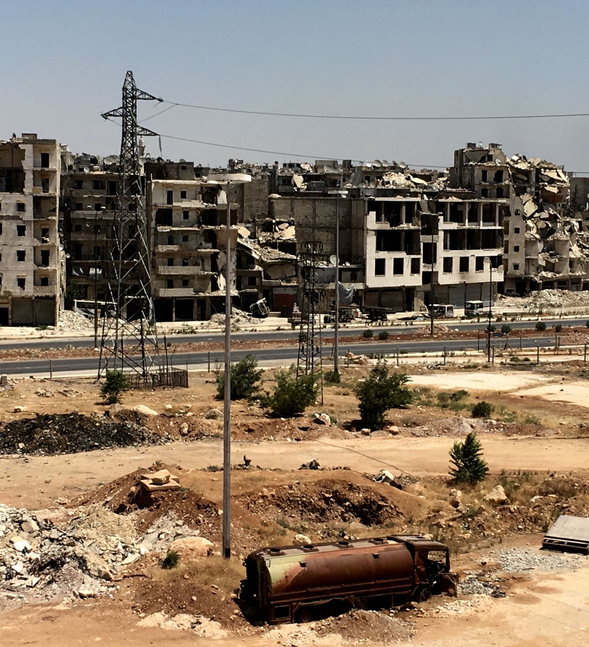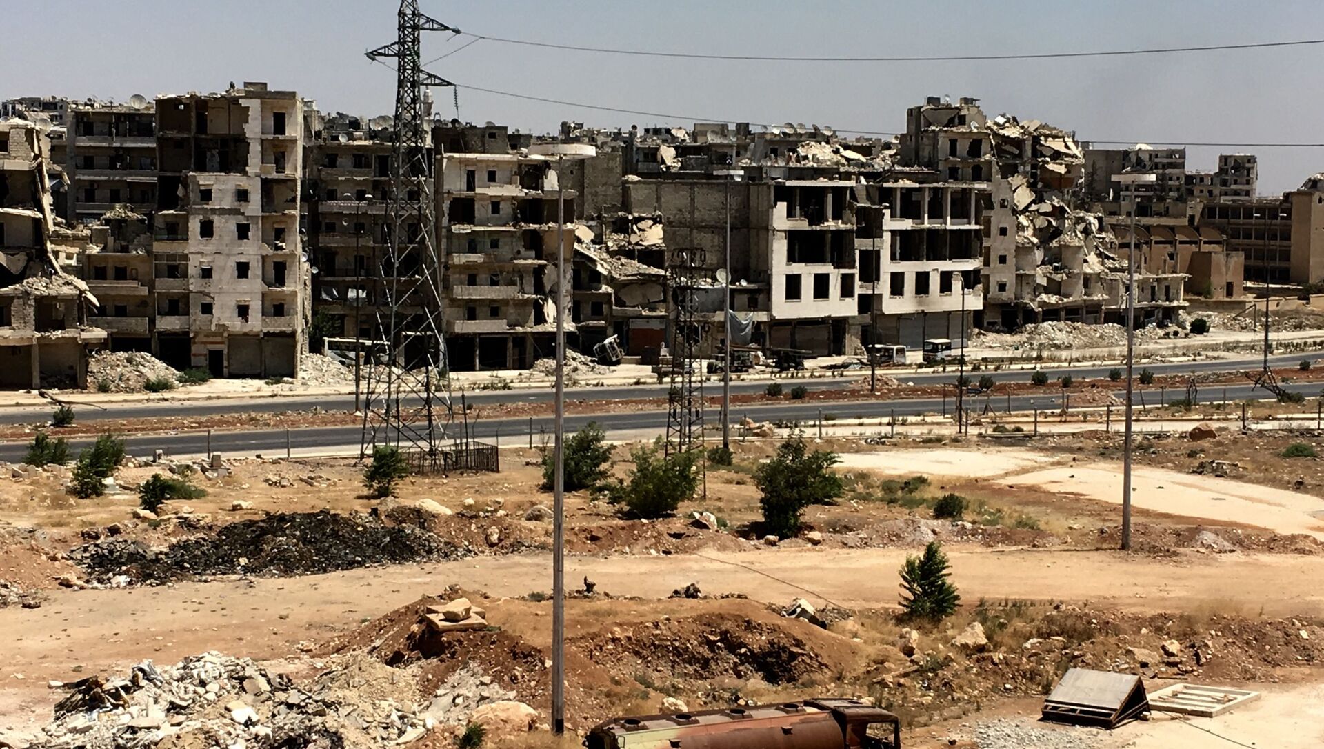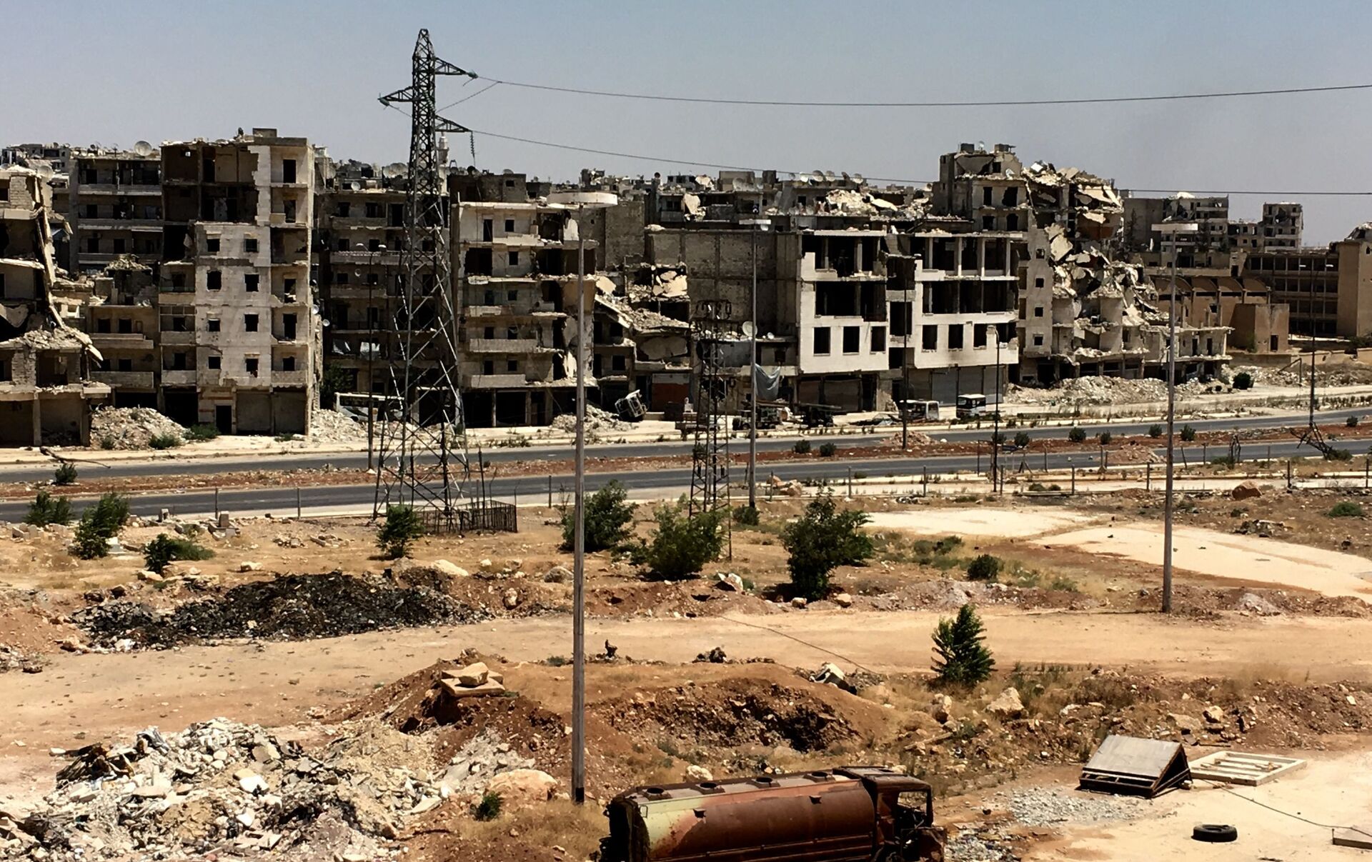 وأصاب الدمار الأكبر حي الحميدية في جنوب المدينة الذي يقصفه المسلحون بالقذائف من موقع كلية المدفعية.