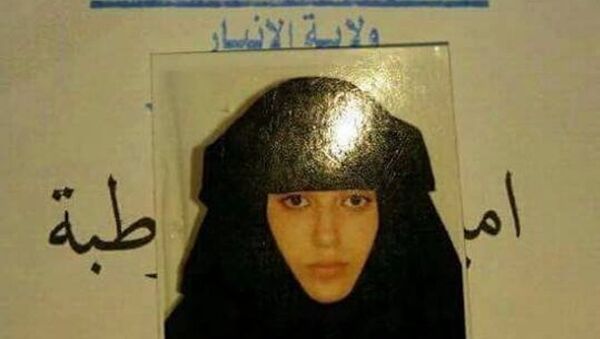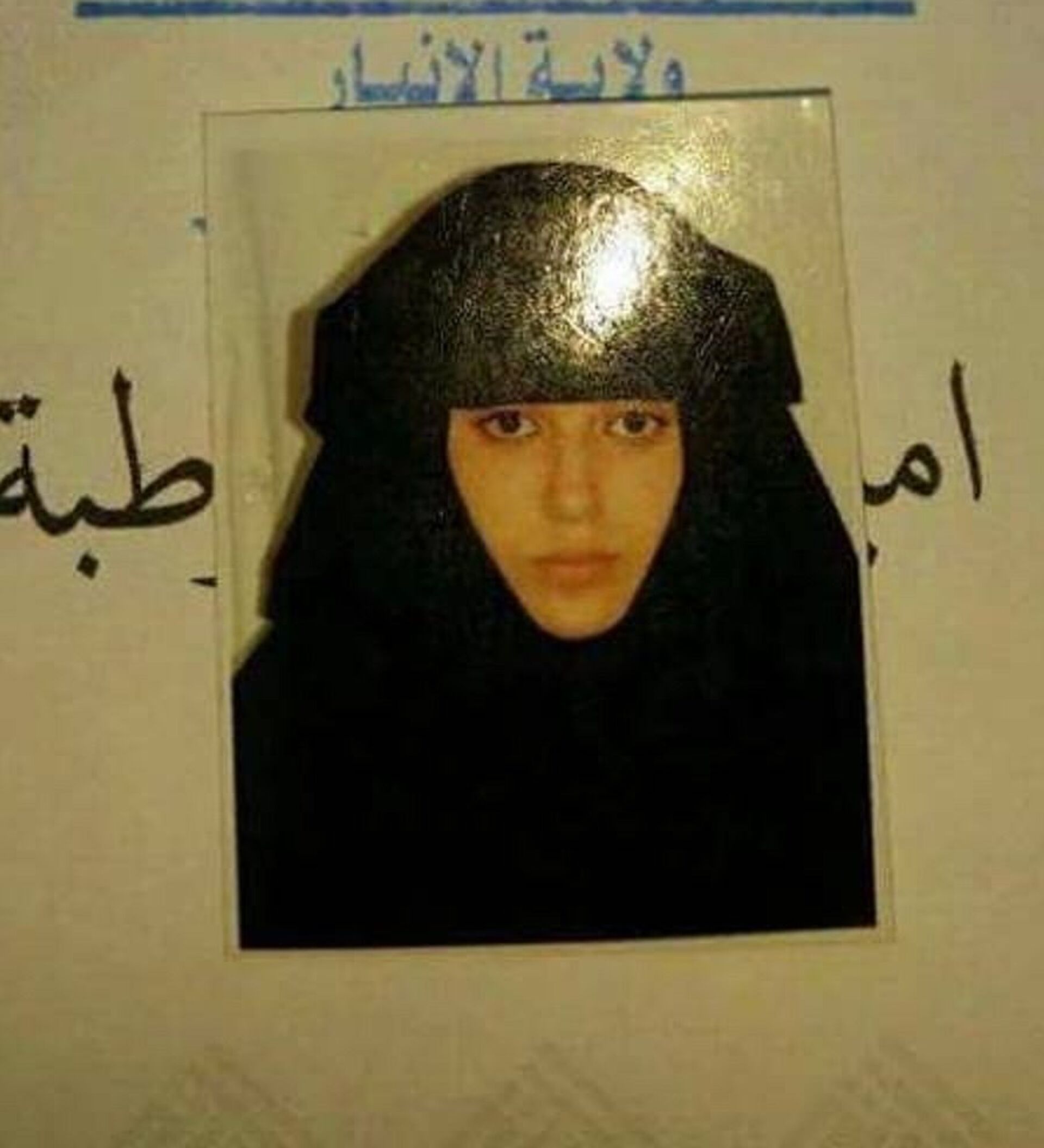 اسم الزوجة "يسرى خالد قدوري" وهي من مواليد عام 2000 أي قاصر في سن 16 عاما، وتظهر في صورتها رافعة لبرقعها ليظهر وجهها فوق "باج" ممنوح لها ممن يُسمى بـ"أمير الرطبة" وهو شاكر وهيب أحد أبرز وأخطر قادة تنظيم "داعش" الذي قتل في غارة للتحالف الدولي ضد الإرهاب في بدايات أيار/مايو الماضي قبل تحرير القضاء من سيطرته بأيام قليلة.