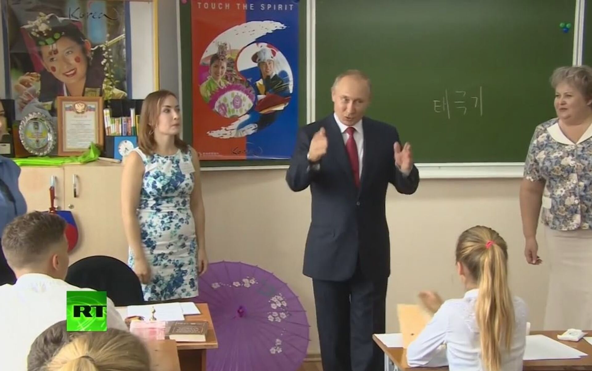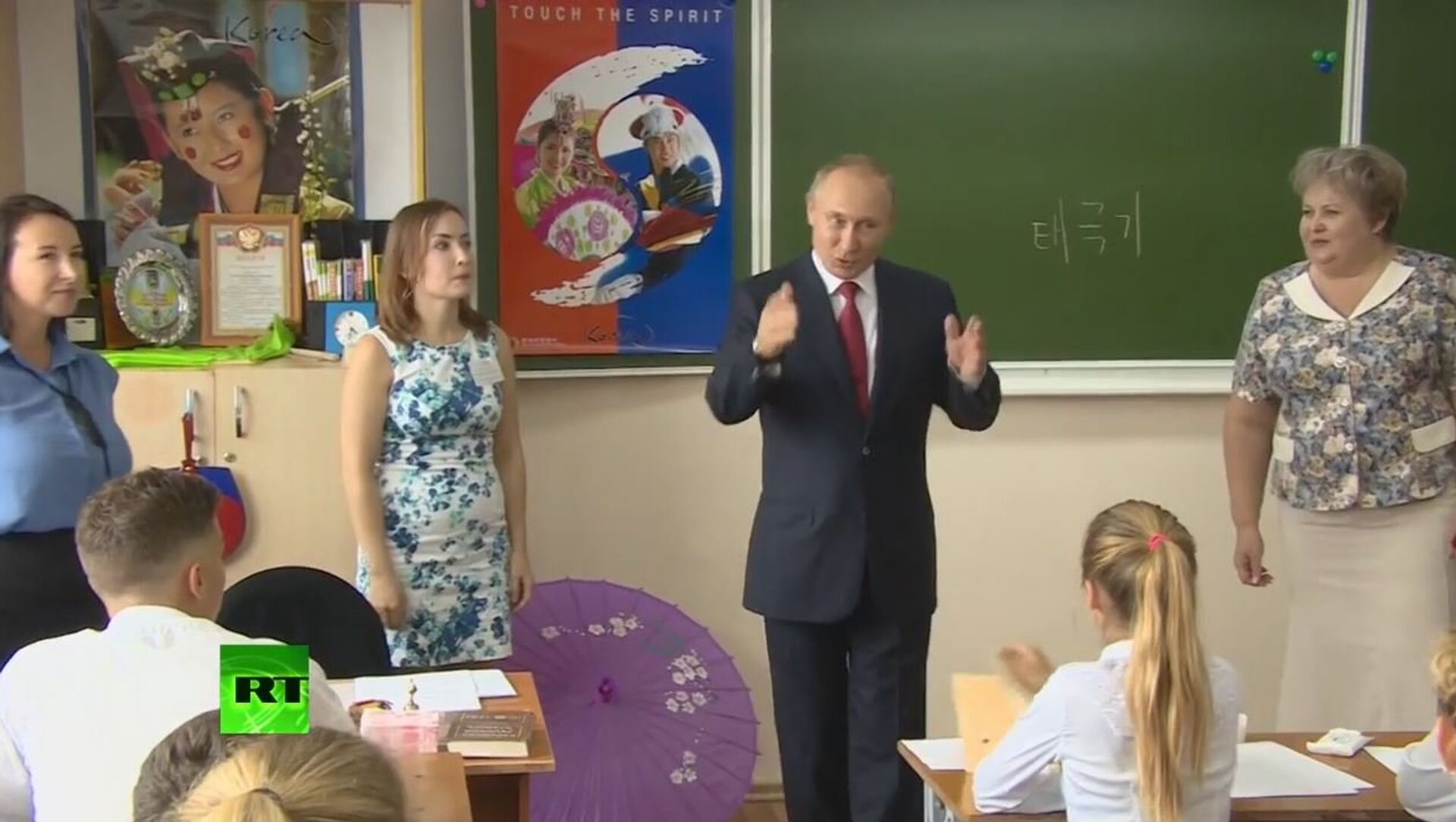 10:41 GMT 01.09.2016 (تم التحديث: 13:49 GMT 23.11.2021) زار الرئيس الروسي فلاديمير بوتين، في الأول من سبتمر/أيلول الحالي، إحدى المدارس الثانوية في مدينة فلاديفوستوك الروسية، حيث هنأ الرئيس الطلاب والمعلمين بمناسبة بدء العام الدراسي الجديد .