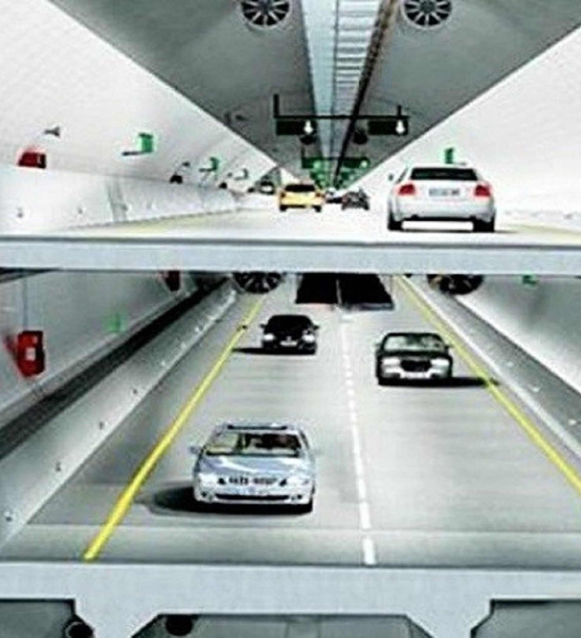وافتتح النفق المكون من طابقين على زاوية شارع "نارودني أوبلتشيني" و "بيريزارينا"، طول كل من النفق العلوي والسفلي 786 و542 مترا معا.