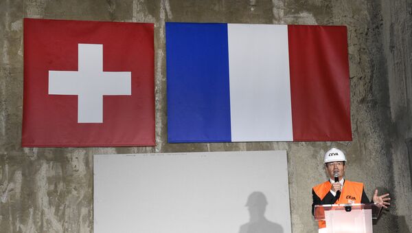 15:31 GMT 23.09.2016 (تم التحديث: 15:39 GMT 23.09.2016) ارتبطت فرنسا وسويسرا بنفق للنقل بين جنيف وأنيماس، وذلك بعد إتمام عملية الربط، اليوم الجمعة 23 أيلول/سبتمبر، على الجانبين الفرنسي والسويسري لمشروع القطار الذي يتوقع أن يبدأ العمل نهاية 2019، حسبما أفادت وكالة "فرانس برس".