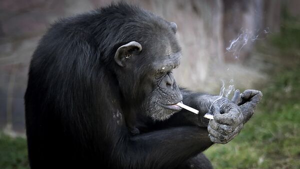 نشرت صحيفة "ديلي ميل" البريطانية فيديو طريف لقرد الشمبانزى وهو يدخن السجائر فى حديقة للحيوانات في العاصمة بيونج يانغ بكوريا الشمالية. 20.10.2016, سبوتنيك عربي