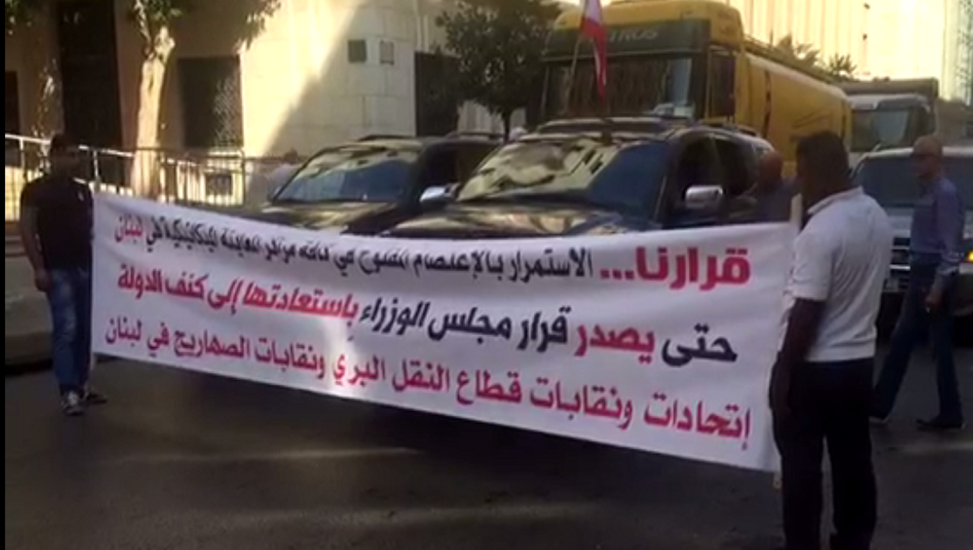وأوضح طليس بأنه إذا لم يقر مجلس الوزراء اليوم المطالب "ستبقى مراكز المعاينة الميكانيكية مقفلة، ونحن ذاهبون باتجاه التصعيد بدءاً من نهار الثلاثاء القادم"، وتمنى طليس أن تستجاب مطالب اتحاد النقل البري لتحييد البلد وتجنيبه خضات اجتماعية".