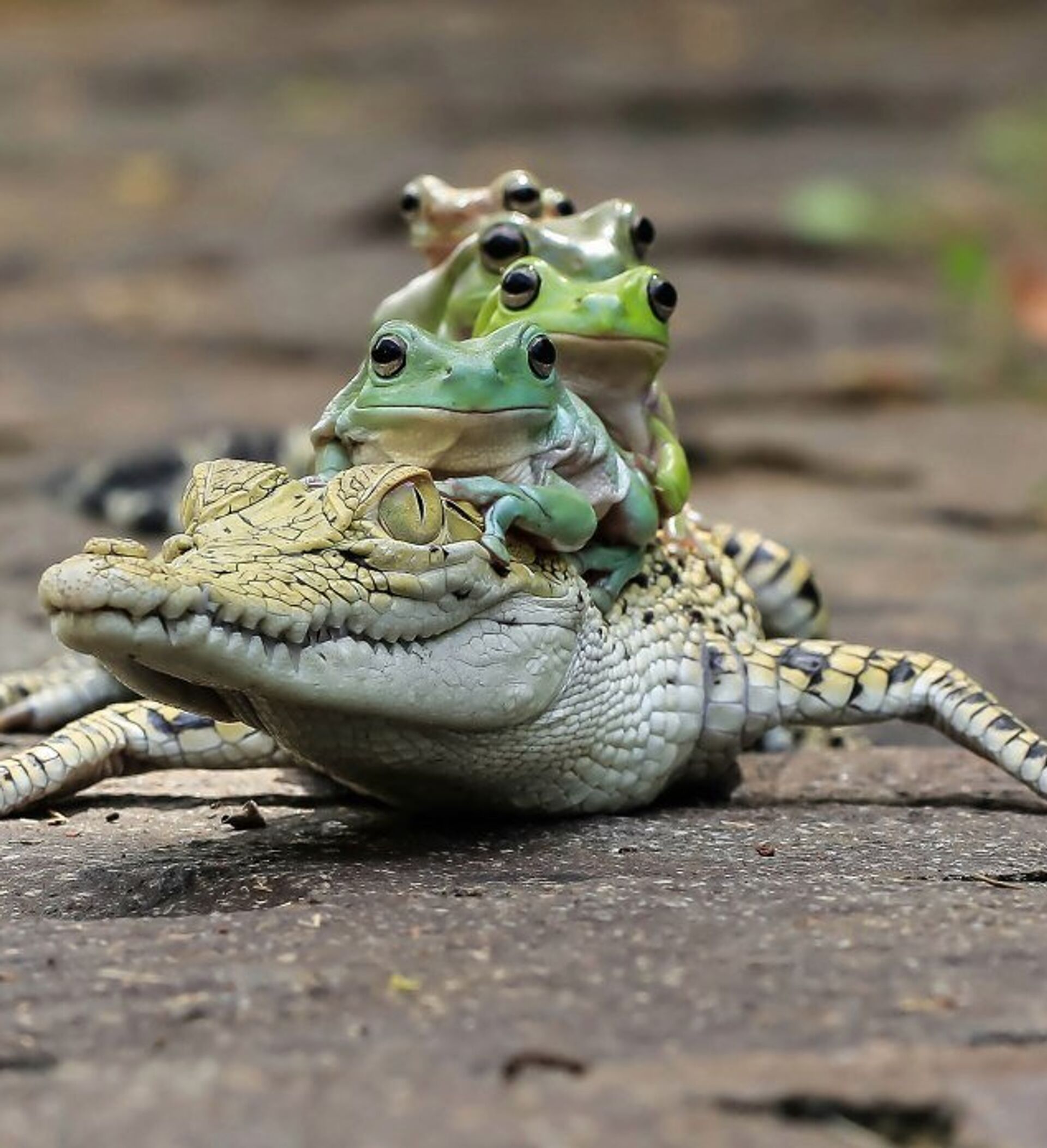 وبحسب " الديلي ميل" فقد قررت خمسة ضفادع مختلفة الألوان بين الأخضر والبني، التسلق على ظهر تمساح أمريكي، واتخاذه وسيلة مواصلات، من دون الخوف من افتراسهم عن طريق التمساح حال جوعه أو غضبه منهم ليتحول المشهد إلى منظر رائع من الطبيعة الخلابة.