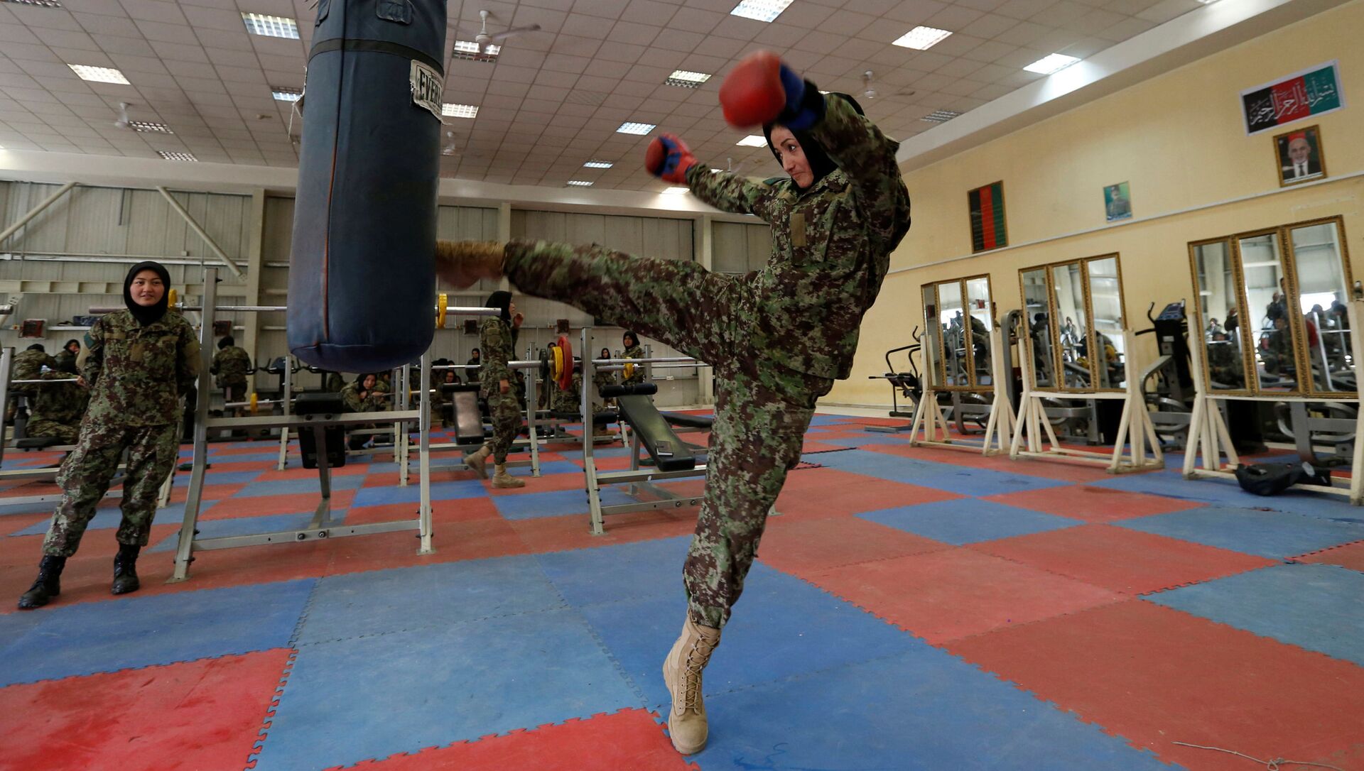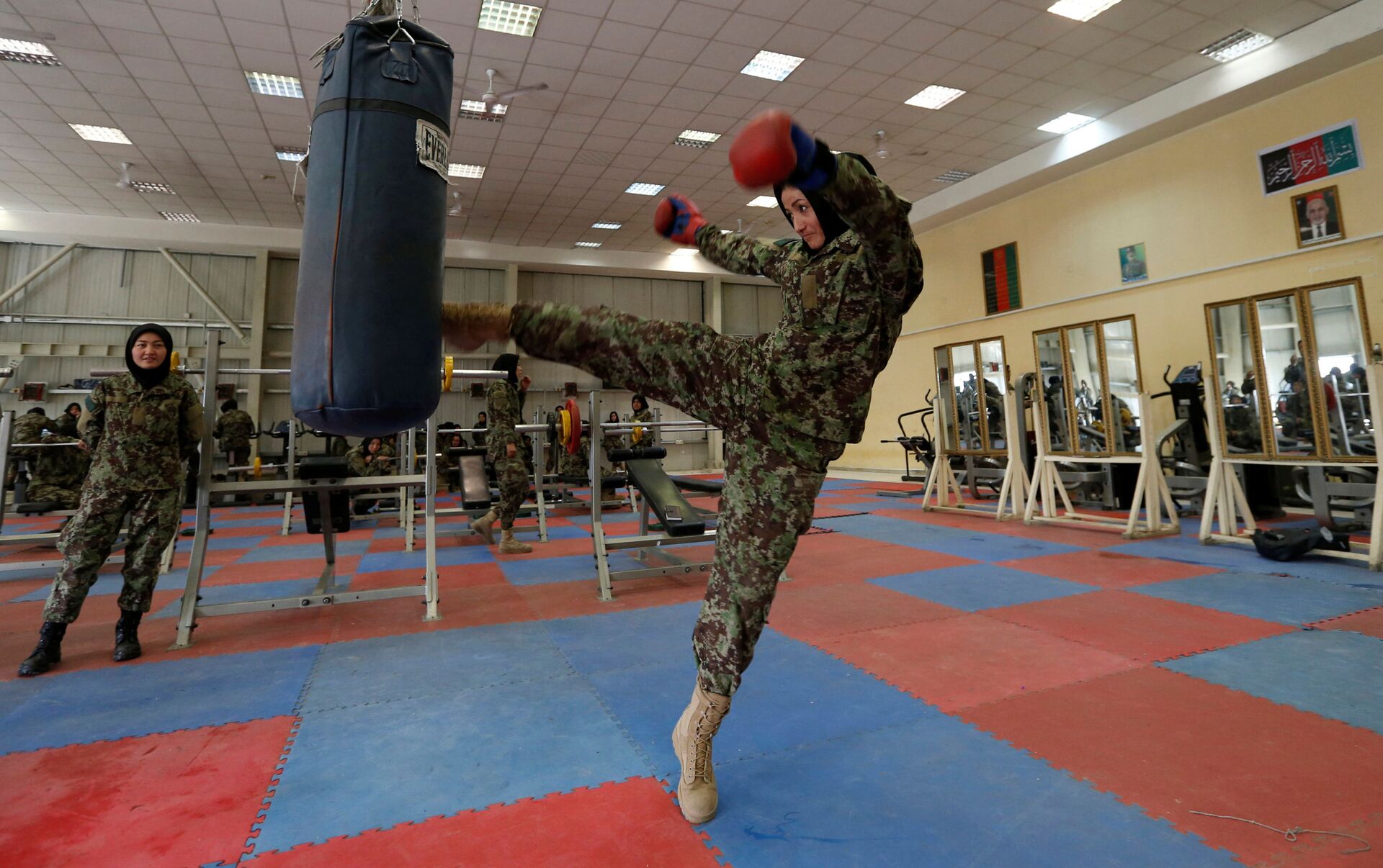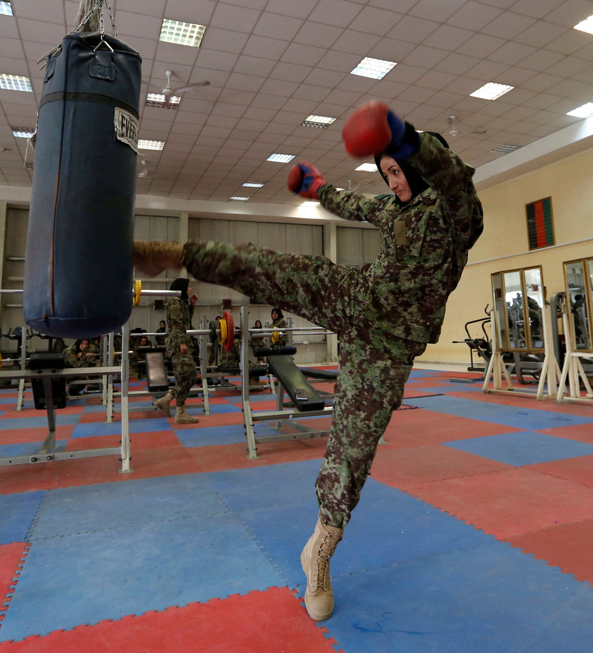 كتيبة النساء التابعة لقوات الجبش الوطني الأفغانية - الجندية باروانا ناجي، 19 عاماً، داخل صالة الرياضة بمركز كابول للتدريبات العسكرية، أفغانستان 23 أكتوبر/ تشرين الأول 2016