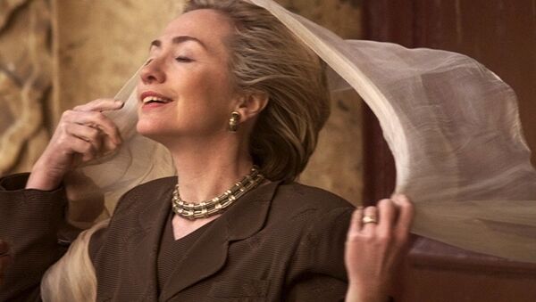 المرشحة للانتخابات الرئاسية الأمريكية من الحزب الديموقراطي هيلاري كلينتون عندما كانت السيدة الأولى للولايات المتحدة، وهي تدلي بشهادتها أمام لجنة المالية بمجلس الشيوخ، 30 سبتمبر/ أيلول 1993