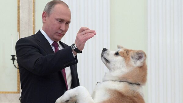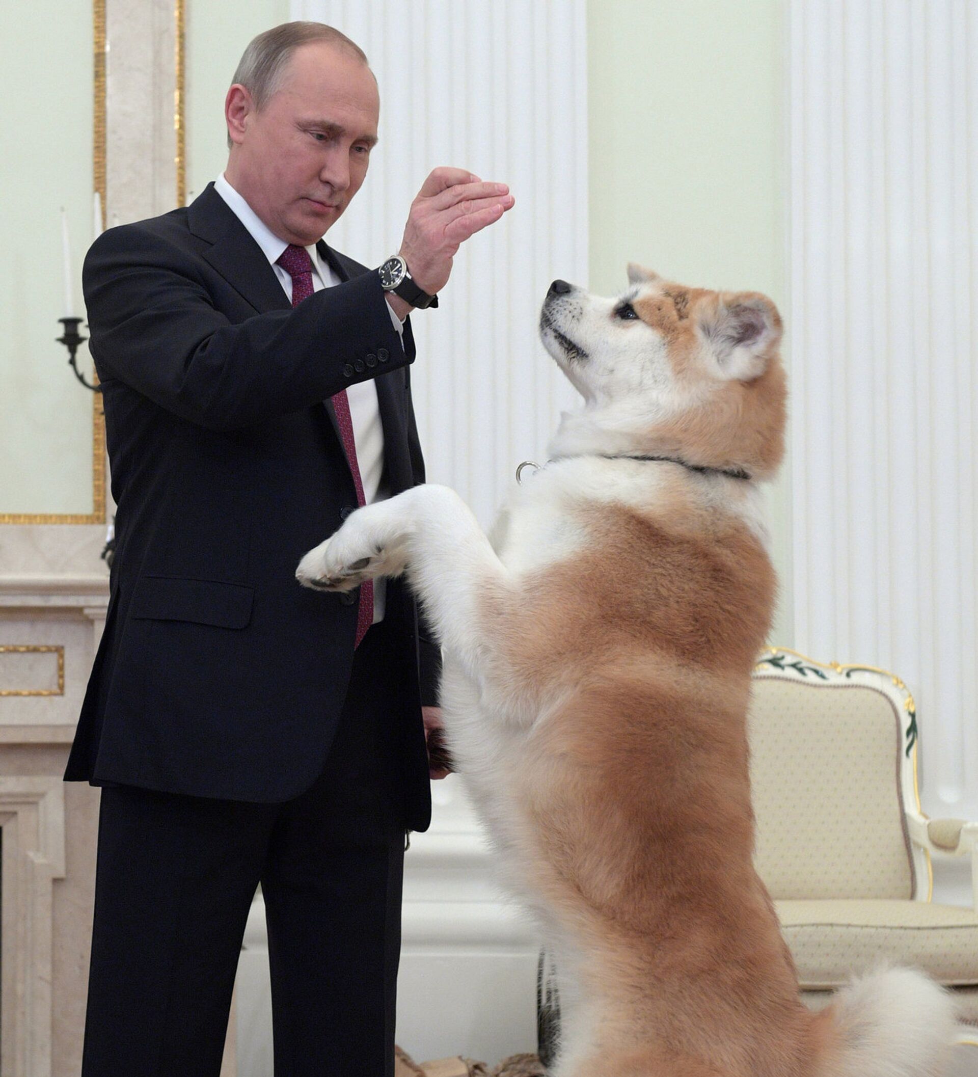 وعرض بوتين لهم في بداية المقابلة كلبه الياباني.