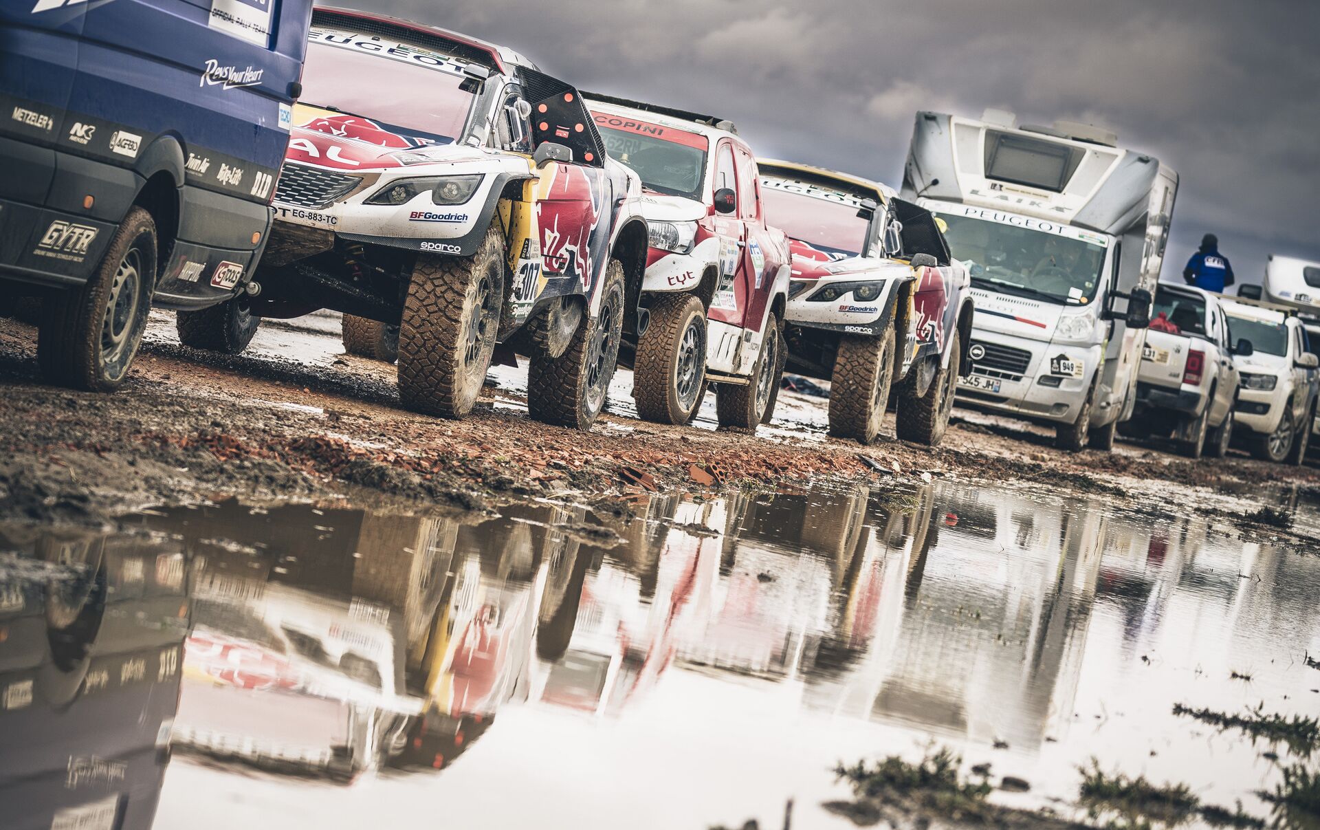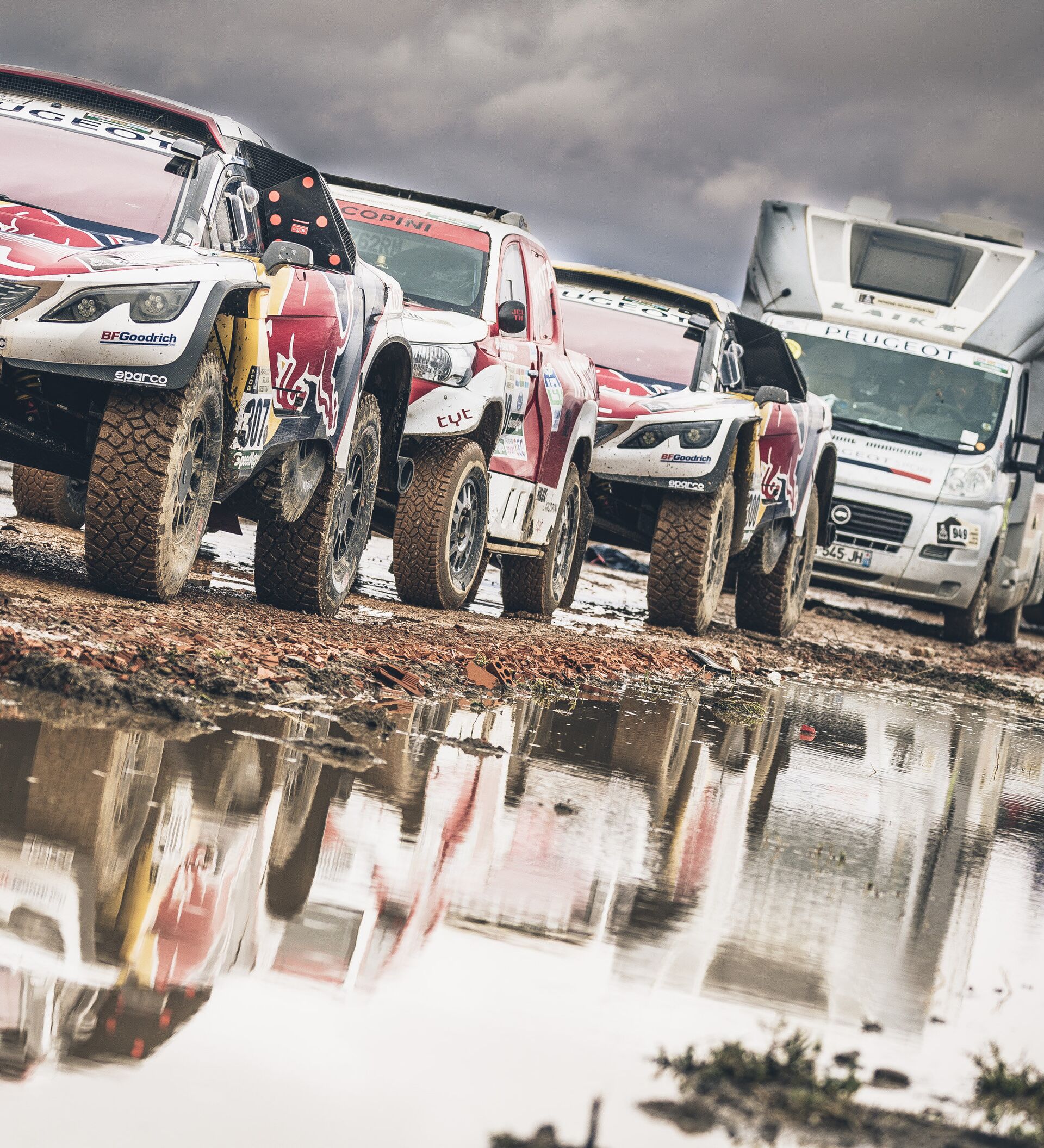 وكان السباق قد شهد في أيامه الأولى، انسحاب العطية (تويوتا) بطل فئة السيارات عامي 2011 و2015 بسبب حادث أضر بسيارته، وساينز (بيجو) بطل 2010، بسبب إنقلاب سيارته في المرحلة الرابعة.