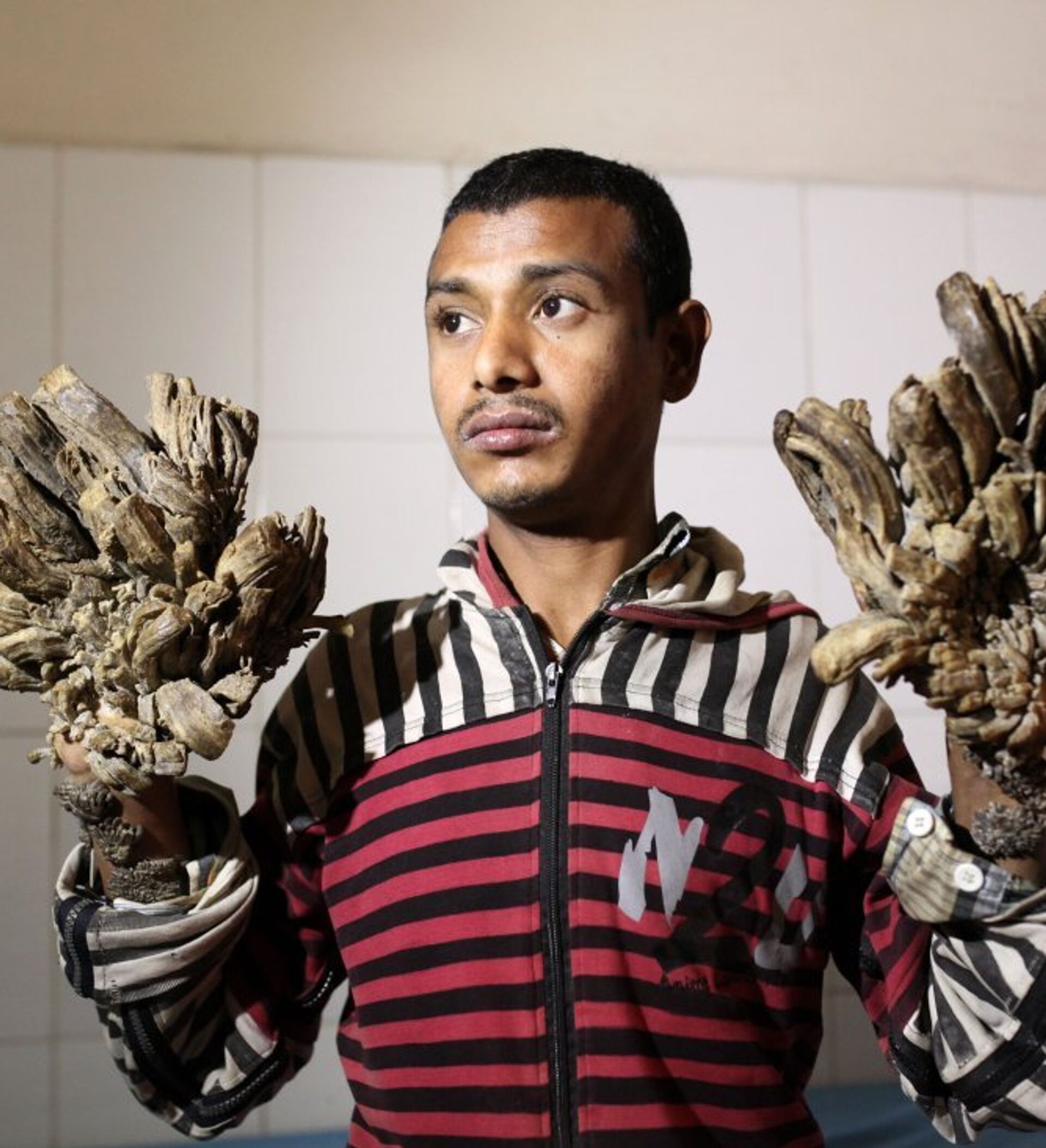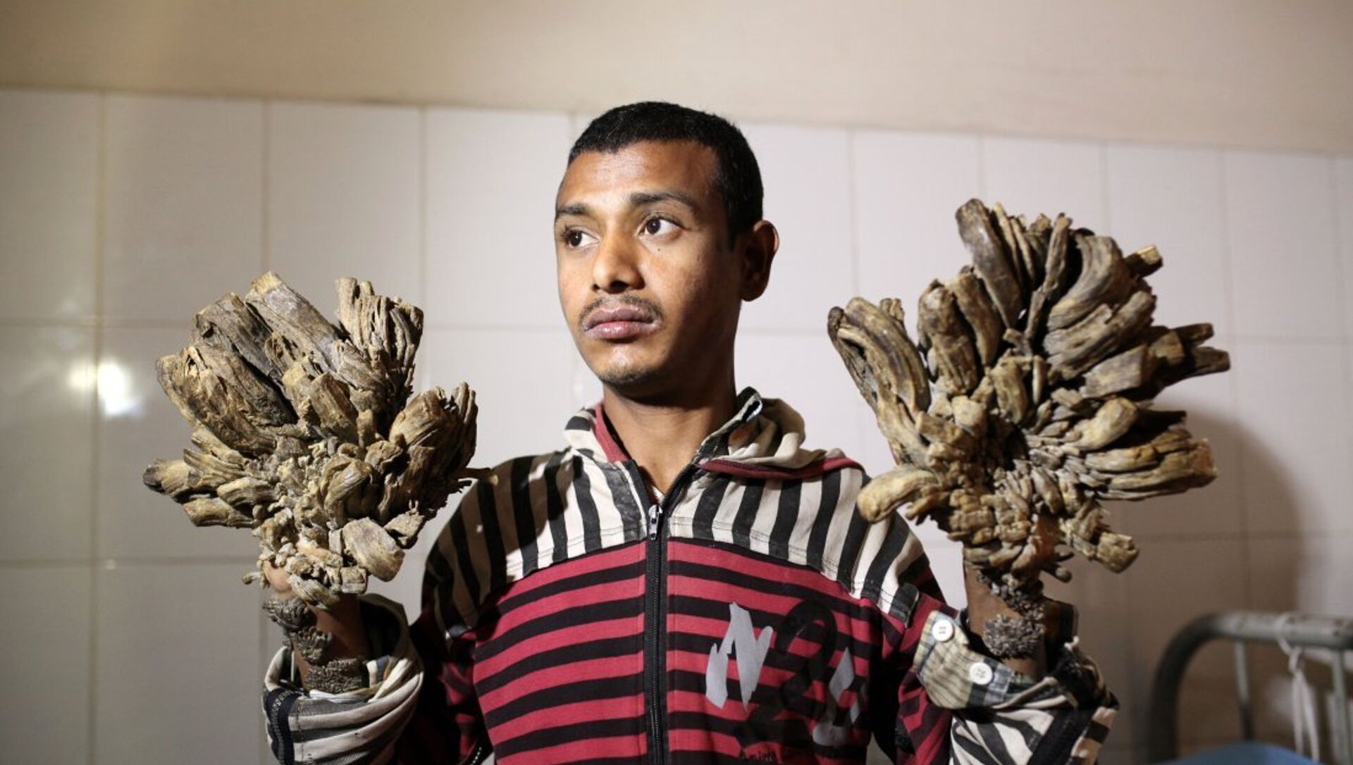 يبلغ الرجل من العمر 27 عاما، وكان يعاني من مرض نادر وهو خلل تنسج البشرة الثؤلولي، وحالته كانت ضمن ثلاث حالات أخرى نادرة على مستوى العالم حيّرت العلماء.