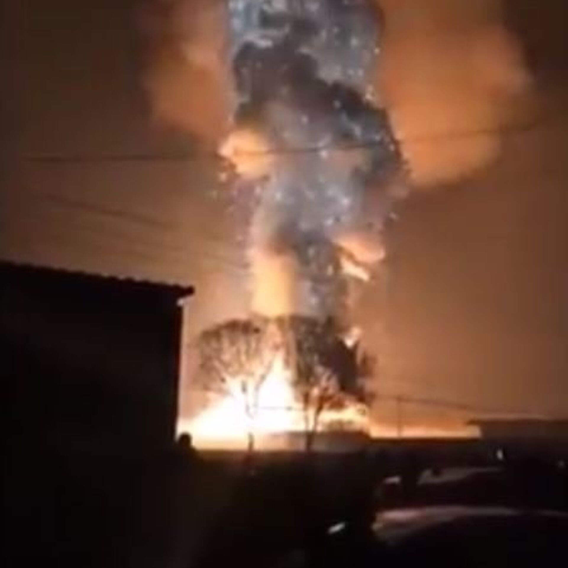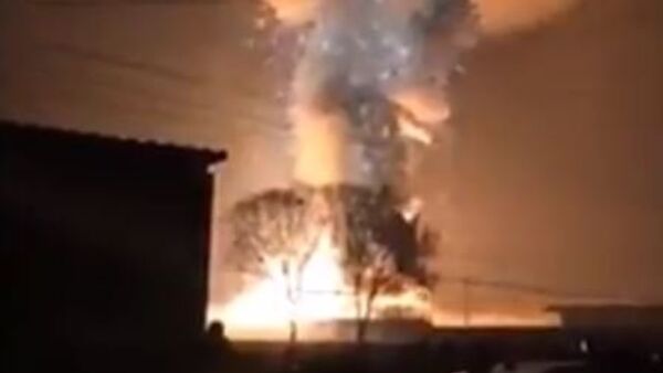 وأظهرت لقطات صورها هواة نيرانا هائلة وأعمدة ضخمة من الدخان في موقع الانفجار الذي وقع يوم الأربعاء في العاشرة مساء بالتوقيت المحلي. 09.02.2017, سبوتنيك عربي