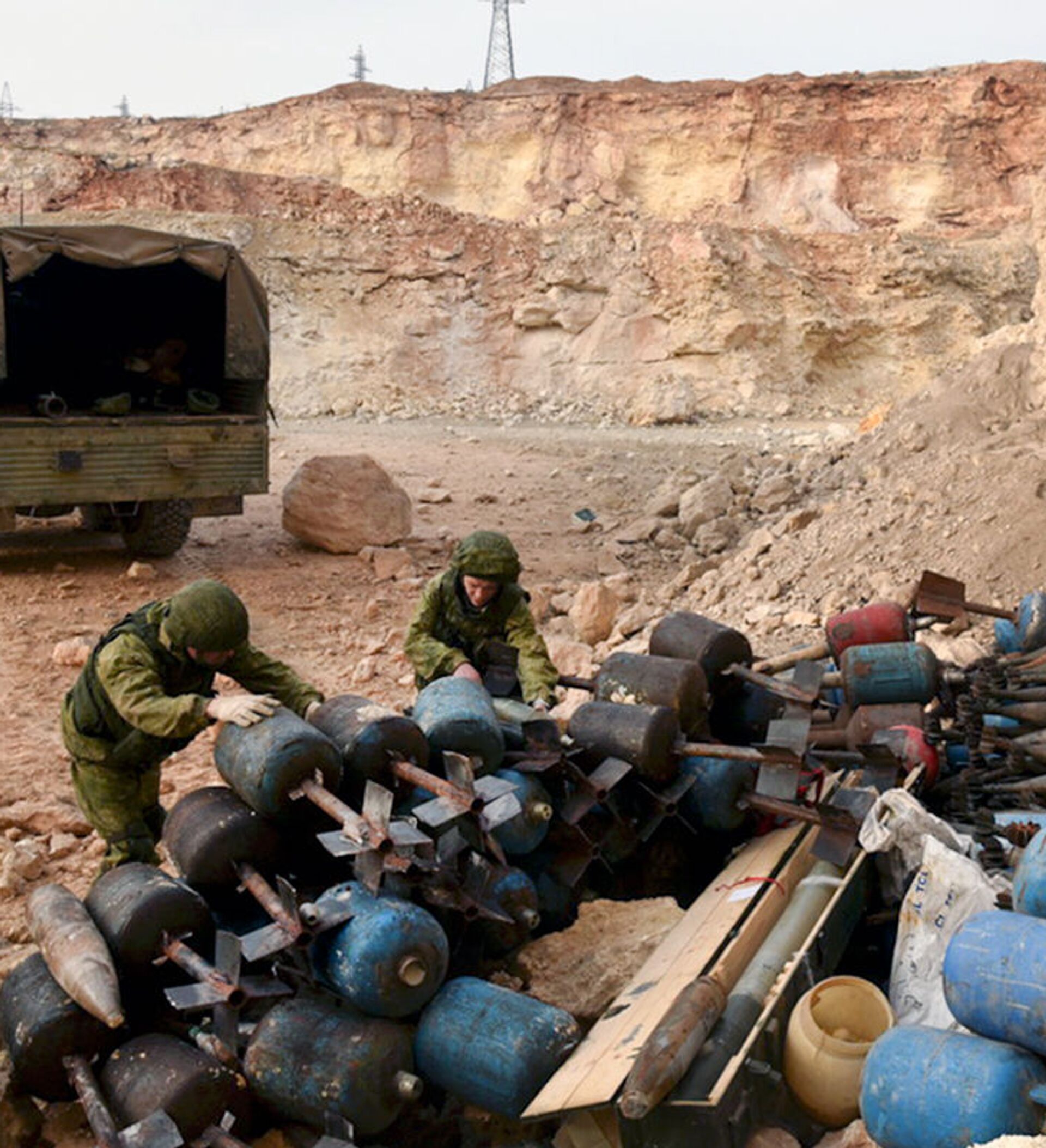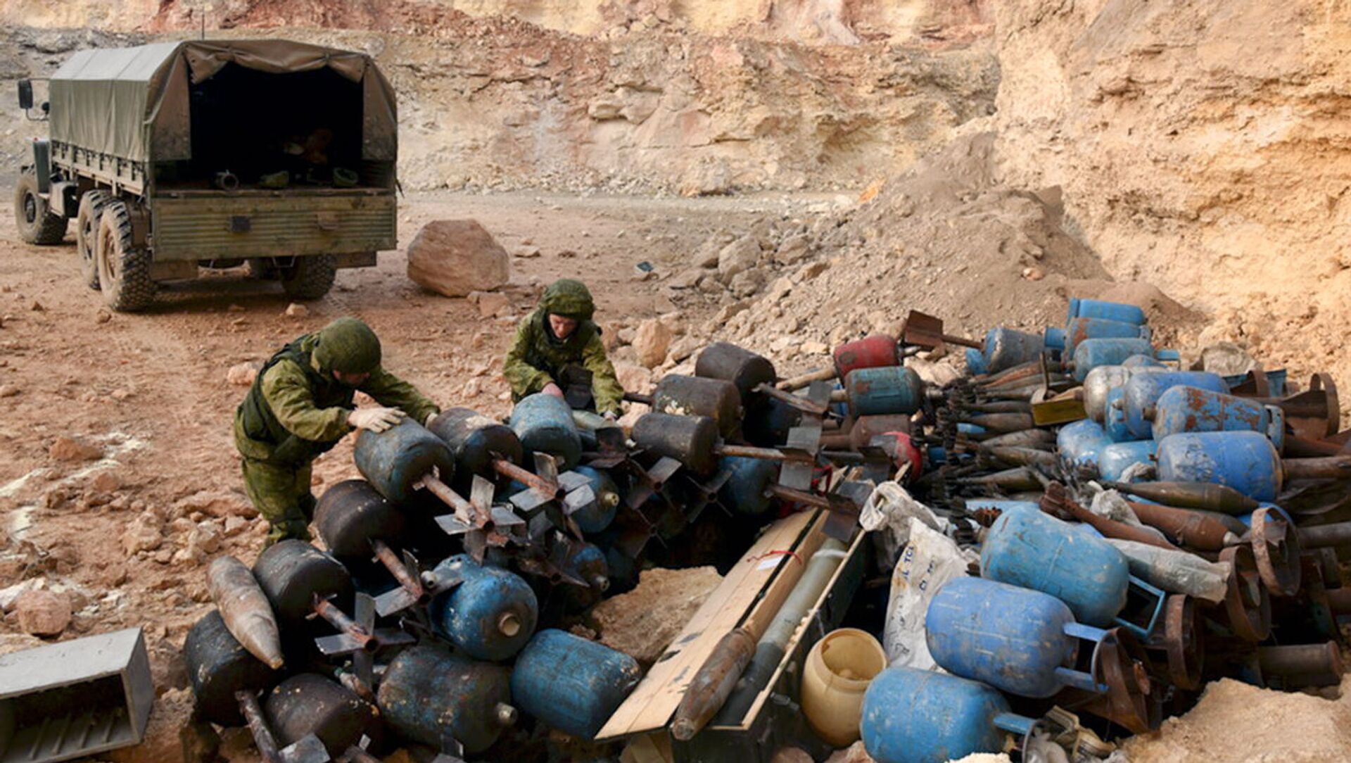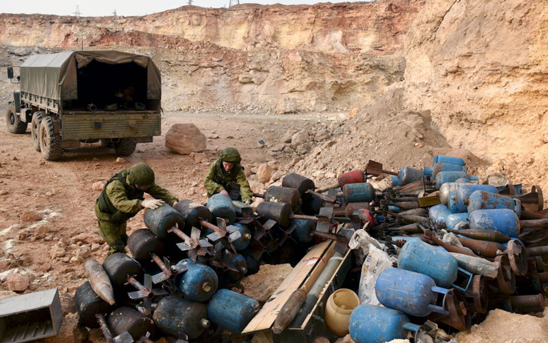 © Sputnik . The Ministry of Defence of the Russian Federationخبراء إزالة الألغام من المركز الدولي لإزالة الألغام التابع للقوات المسلحة الروسية في الأحياء السكنية في حلب في سوريا