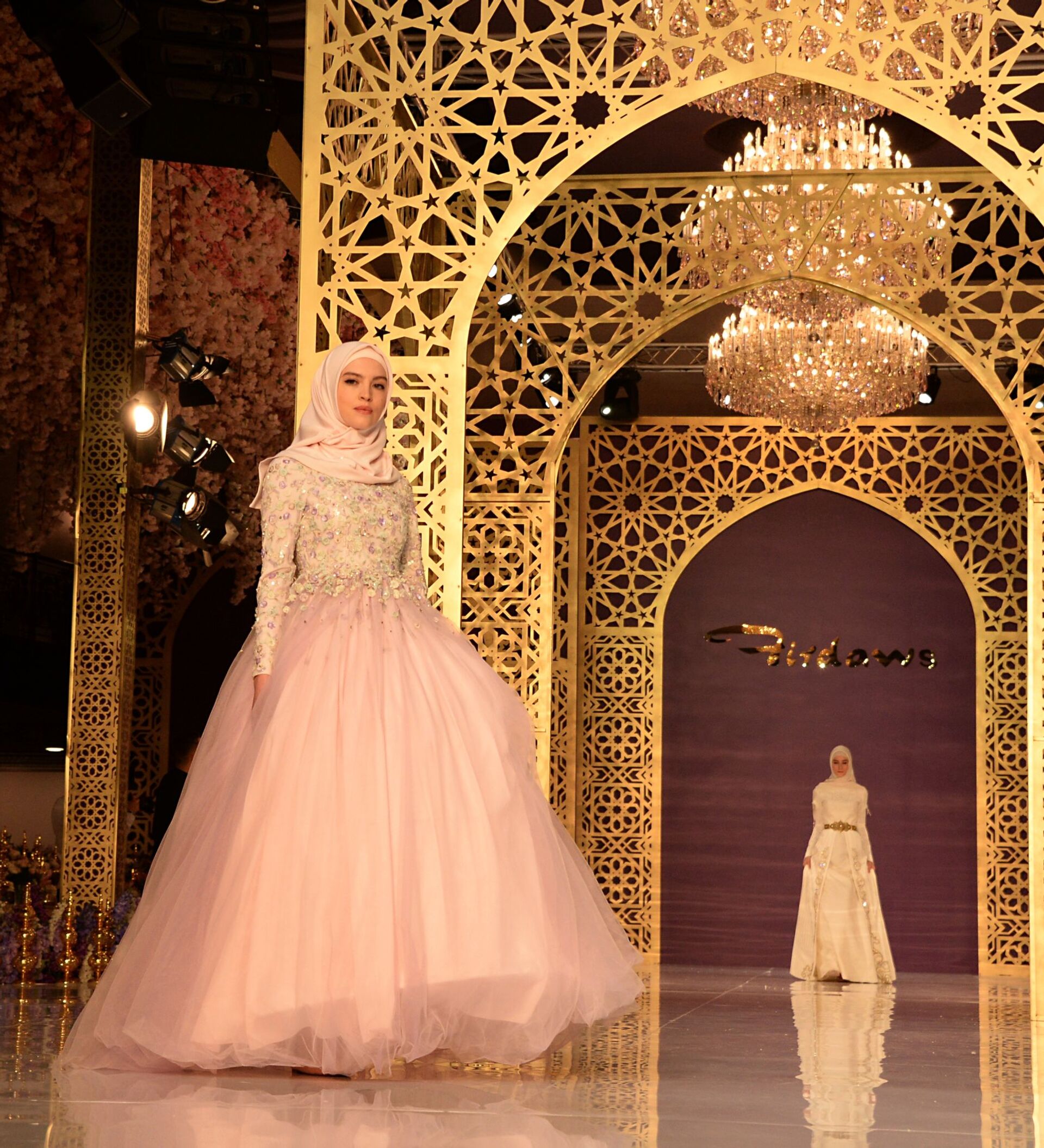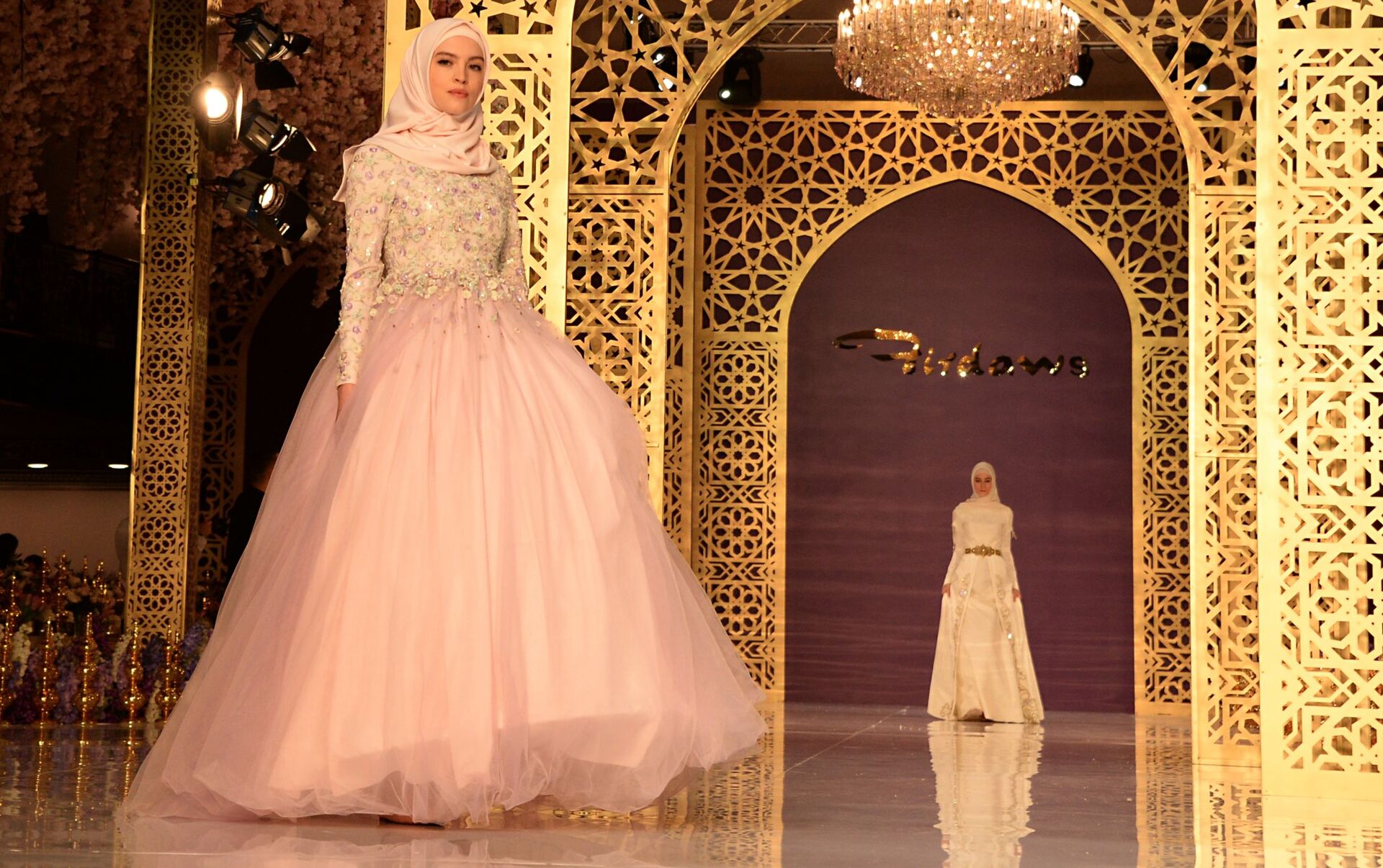 عارضات الأزياء الشيشانيات خلال عرض أزياء لدار الأزياء "فردوس" (Firdaws) للمصممة عايشة قديروفا في مدينة غروزني يوم أمس الأربعاء، 2 مارس/ آذار 2017