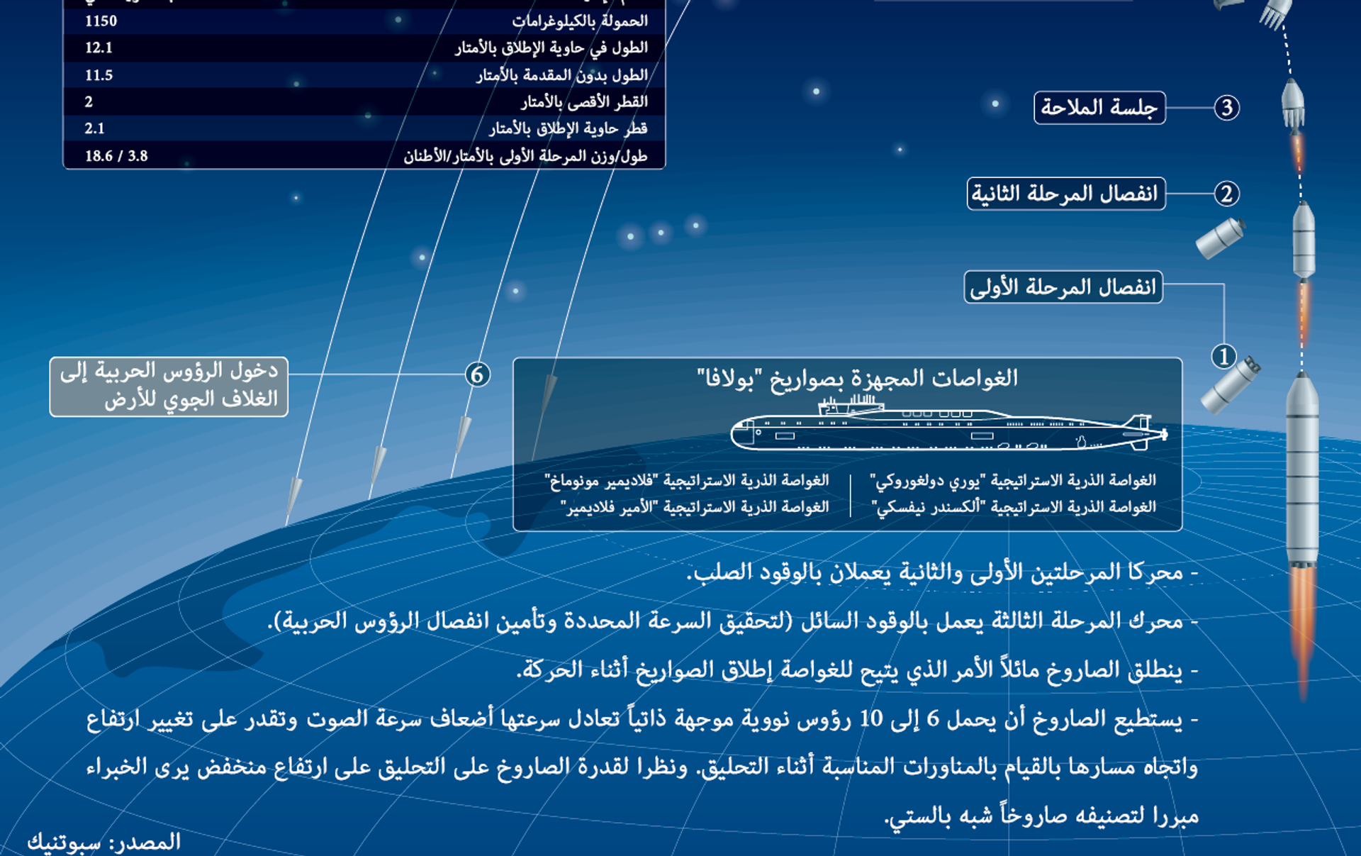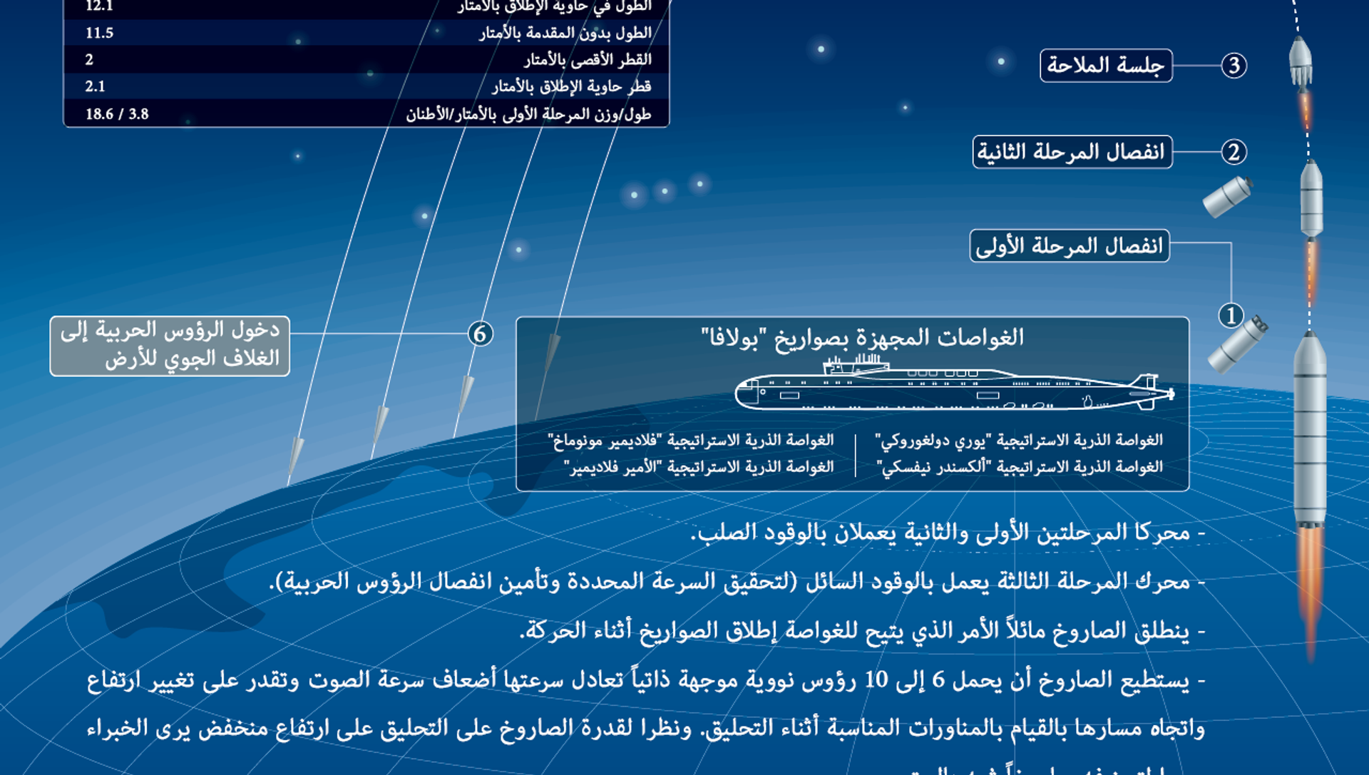 مراحل ضرب الأهداف بصواريخ "بولافا" البالستية
