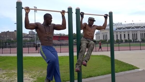 انتشر فيديو على مواقع التواصل الاجتماعي لأب و ابنه وهما يقومان بتدريبات رياضية أقل ما يقال عنها بالشاقة. 11.06.2017, سبوتنيك عربي
