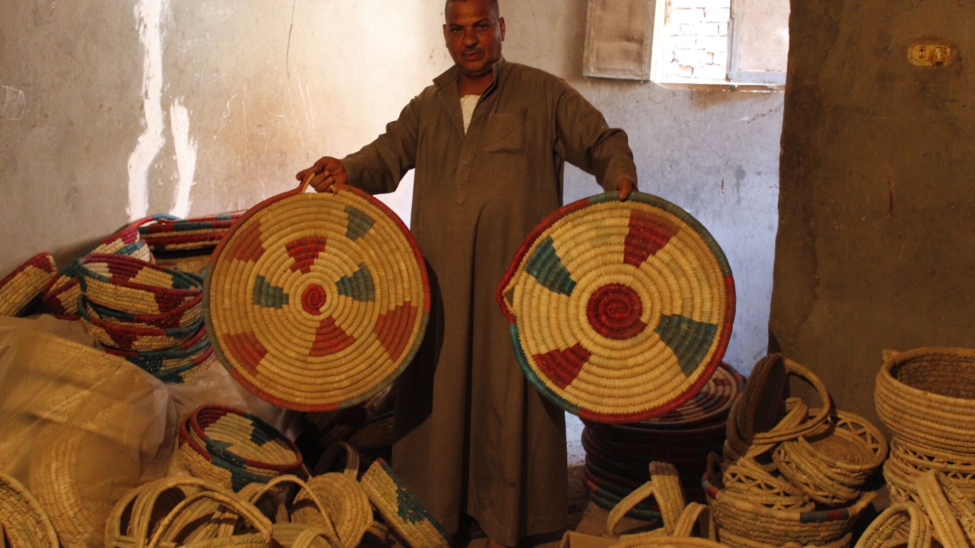ويشير إلى أنه ورث تصنيع منتجات النخيل عن آباءه وأجداده، لافتا إلى أن نحو 50 شخصًا يعملون فى هذه المهنة فى الفترة الحالية ولكن جميعهم يعانى من خسائر كبيرة بسبب حالة الركود واختفاء السائحين واصبحت "تلك التجارة مهدده".