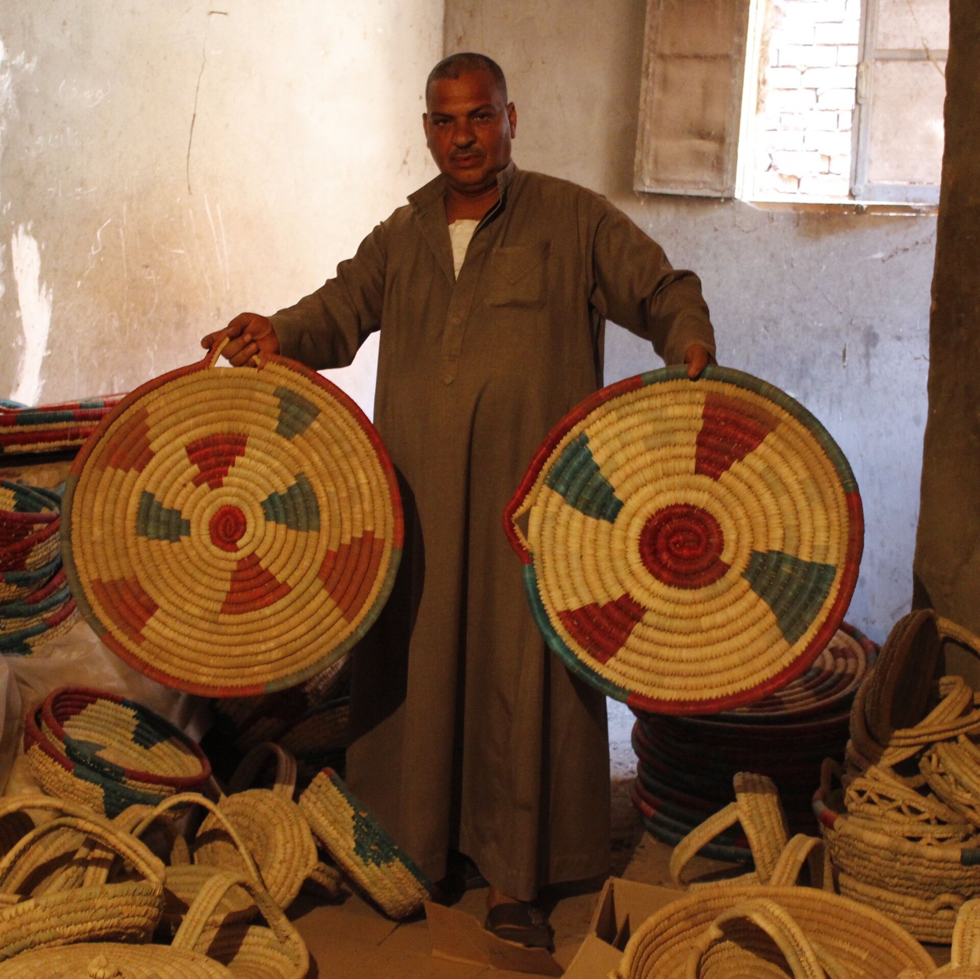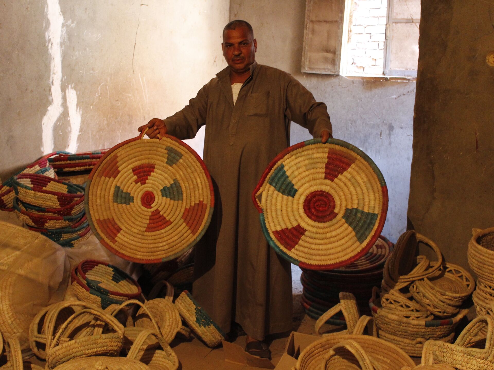 وفي نفس السياق، قال لنا خالد أحمد خالد، أحد صانعى الجريد والخوص، إن قرية الإعلام عرفت صناعة الخوص ومنتجات النخيل فى بدايات القرن الماضى قبل ثورة 1919، عندما جاء مجموعة من المواطنين من محافظة أسوان لزيارة ذويهم وبصحبتهم بعض المشغولات المصنوعة من سعف النخيل، ومنذ ذلك التاريخ عرفت القرية هذه الصناعة واصبحت مركزًا لها بعد هذه الفترة، واحترف معظم قاطنيها هذه المهنة وكانوا يحققون أرباحًا كبيرة منها، ولكن مع التطور وظهور منتجات أخرى بديلة أصبح العاملين فى هذه الصناعة يعانون الآمرين فى سبيل بيع منتجاتهم التى كان يتهافت عليها السائحون والمواطنون فى باقى المحافظات، ولكن مع توقف حركة السياحة عقب ثورة 25 يناير بالإضافة إلى توقف المعارض ببعض المحافظات السياحية جعل الطلب على المنتجات ضعيفا للغاية.