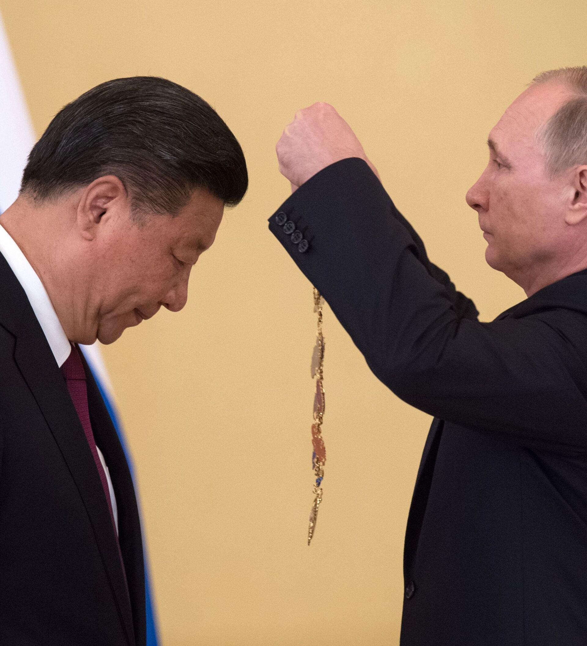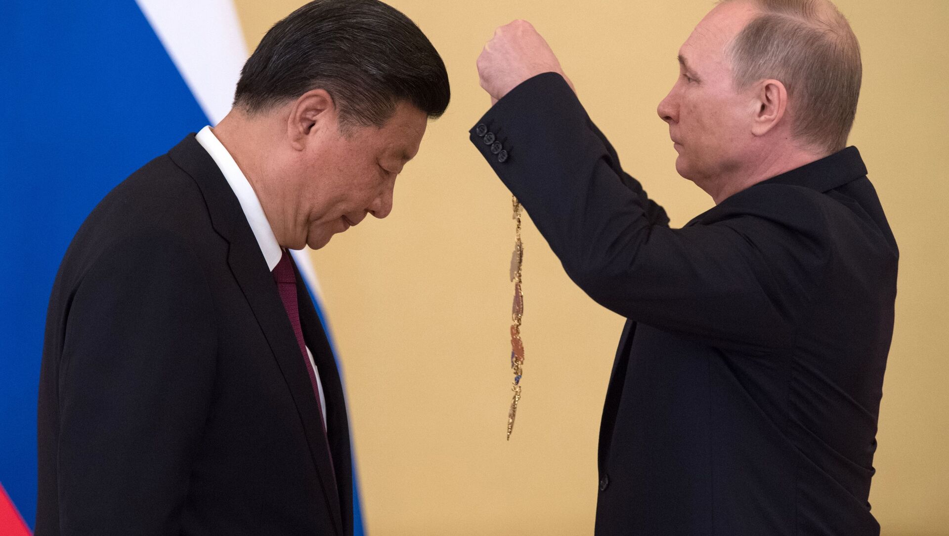 وأعقب جلسة مباحثات رئيسي الدولتين فلاديمير بوتين وشي جين بينغ حفل تقليد أعلى وسام روسي إلى الرئيس الصيني.