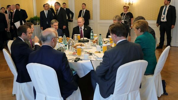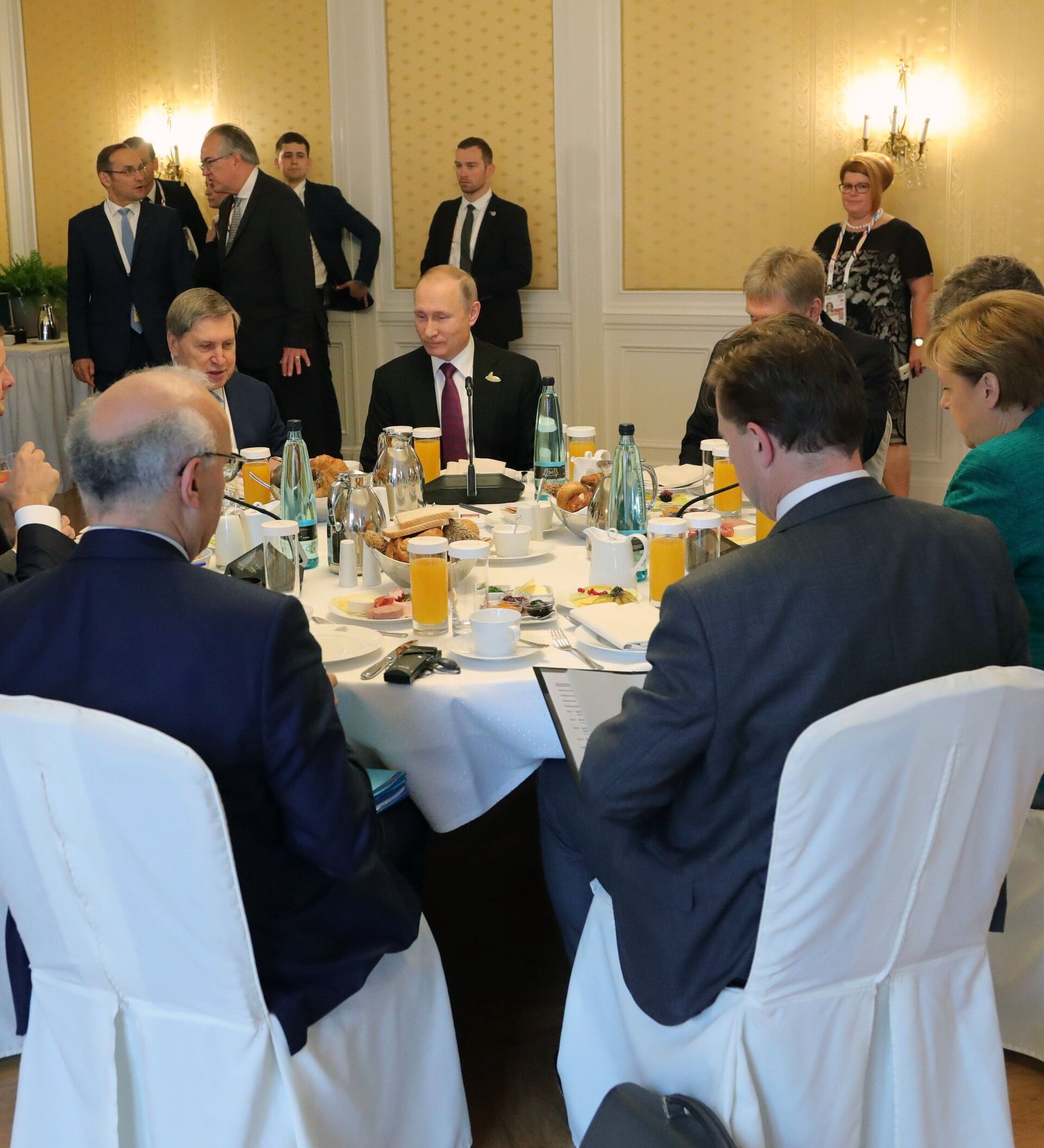وقد ذكر في وقت سابق من اليوم السبت أن اجتماعا بدأ في هامبورغ بين الرئيس الروسي فلاديمير بوتين والمستشارة الألمانية أنغيلا ميركل والرئيس الفرنسي ايمانويل ماكرون حيث من المتوقع أن يناقشوا المسائل التي طرحت في "مجموعة العشرين" وقضايا الساعة من جدول