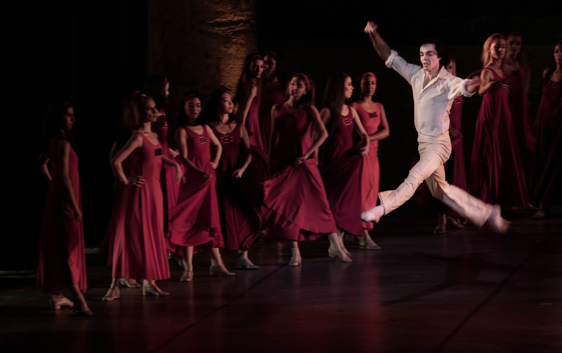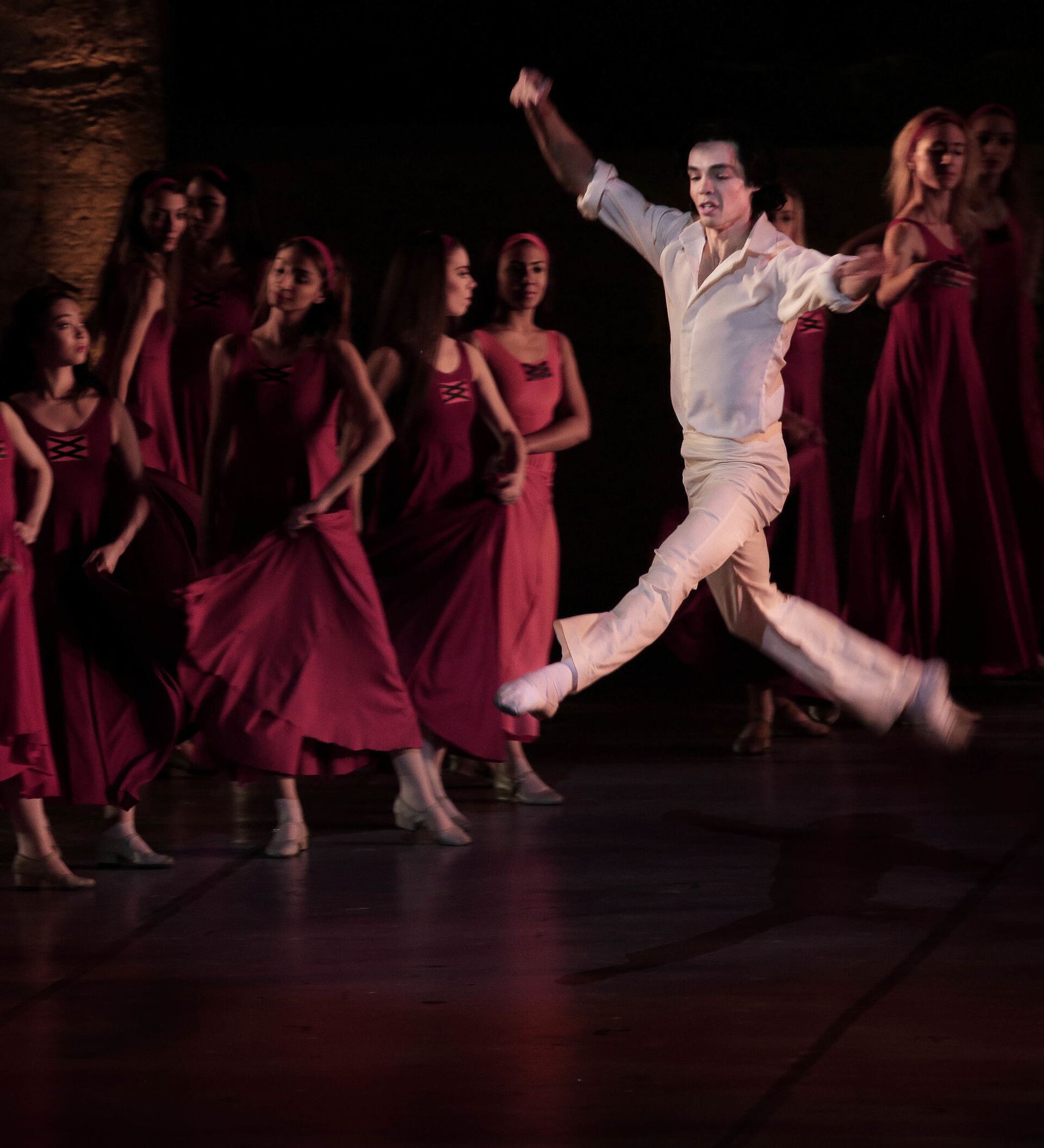 وعلى مدى ساعتين قدمت الفرقة عروضا ورقصات كانت تخرج من الموت إلى الأمل والطاقة والقيامة والرجاء وكل ذلك على مسرح يخلو من الديكور، فيما تحولت الأجساد نفسها إلى سينوغرافيا خلابة جعلت من الراقصين جسدا واحدا.