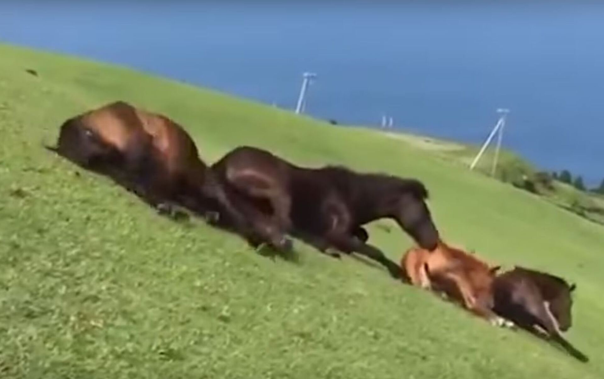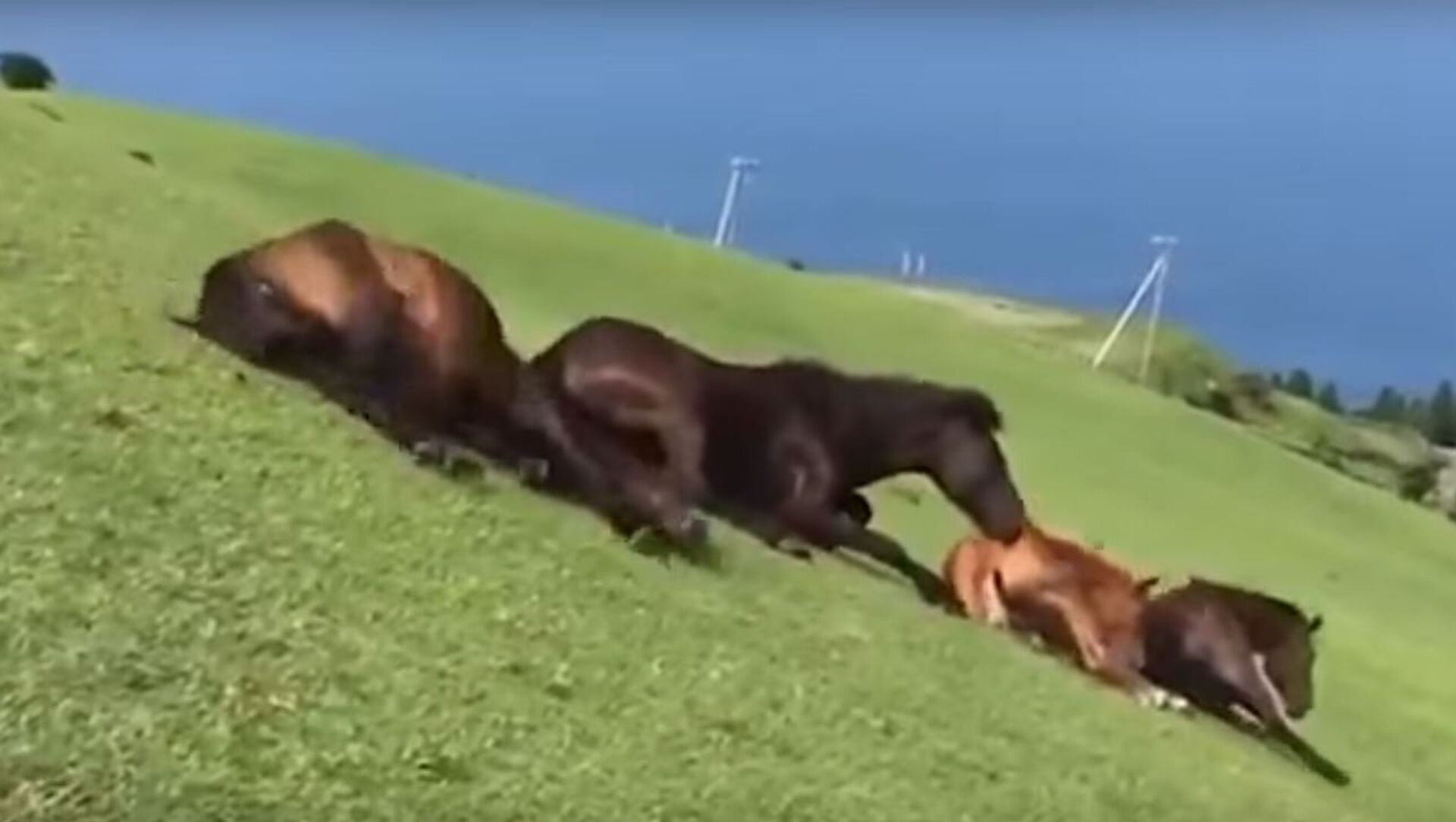 انتشر فيديو على مواقع التواصل الاجتماعي، لمجموعة من الخيول البرية التي راحت تمرح و تلعب على سهل عشبي، في مقاطعة ميازاكي اليابانية. 18.08.2017, سبوتنيك عربي