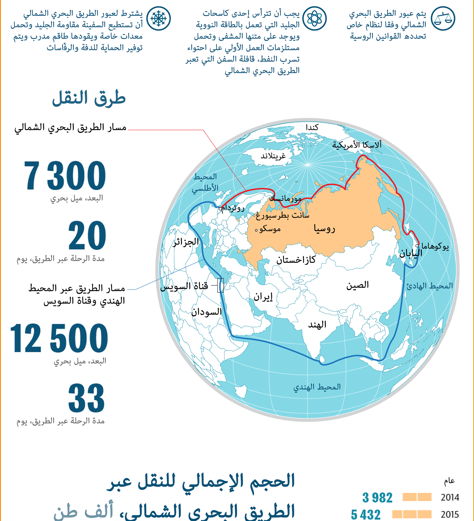 يتم عبور الطريق البحري الشمالي وفقا لنظام خاص تحدده القوانين الروسية.