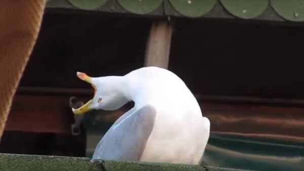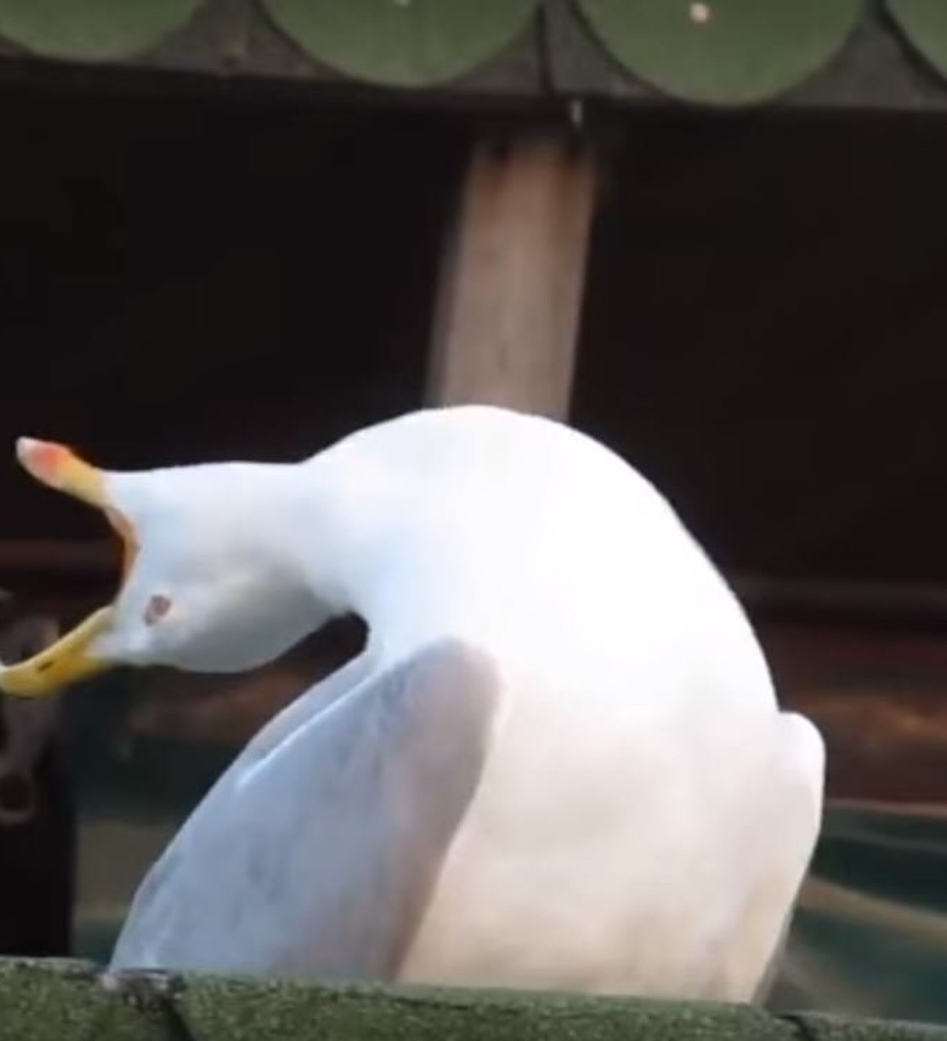 الفيديو الذي يظهر الطائر في وضعية يحني بها رقبته ليعود ويرفعها بضحكة أثارت الحاضرين.