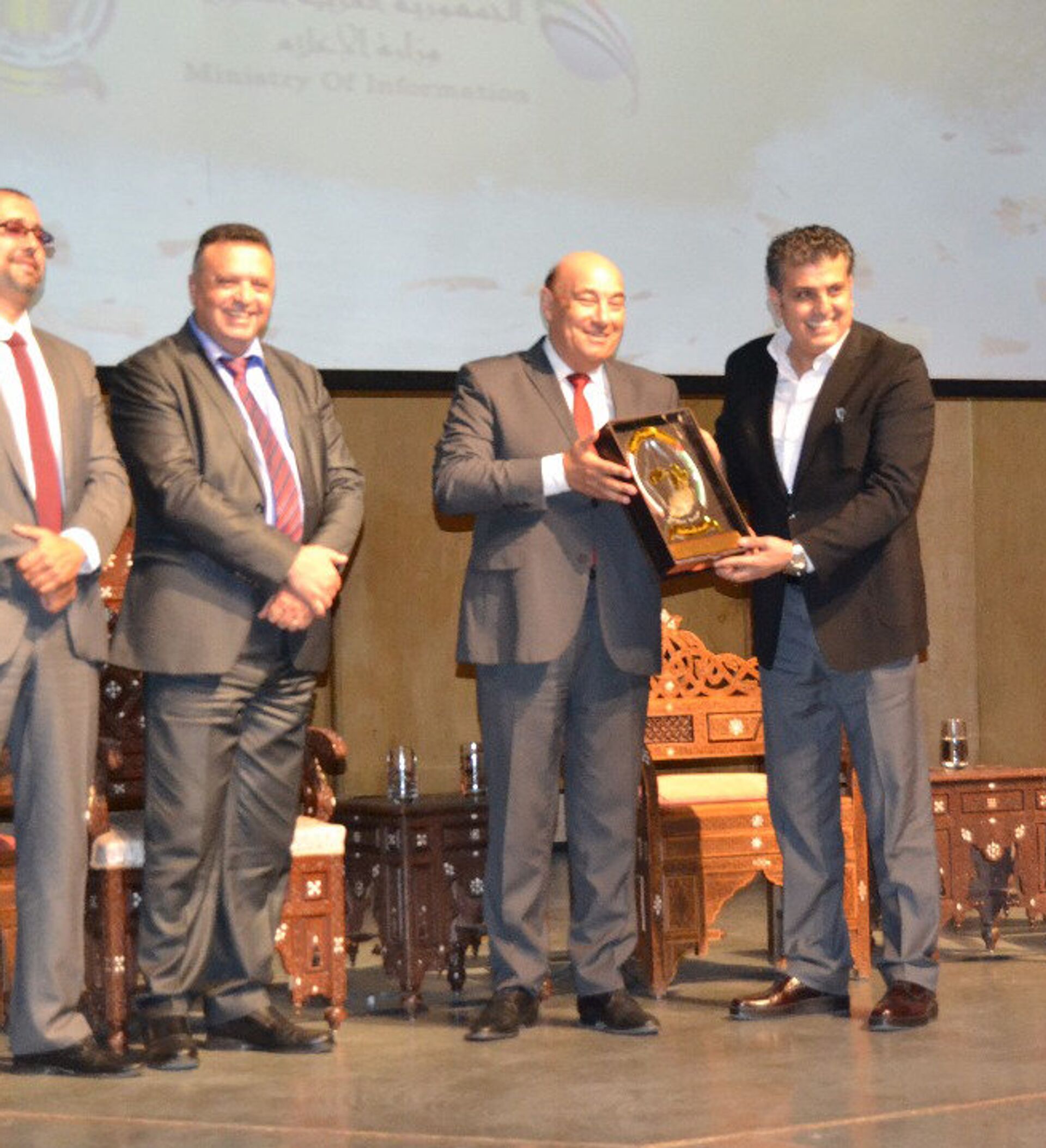 وأتى التكريم خلال مهرجان الإعلام السوري الأول، وحمل عنوان "حكاية صمود"، الذي أقيم على مدرج دار الأوبرا في دمشق بحضور الدكتور مهدي دخل الله عضو القيادة القطرية لحزب البعث العربي الاشتراكي، ونقيب الصحفيين في فلسطين عبد الله أبو بكر، وجبار