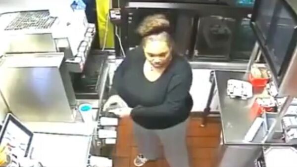رصدت كاميرات المراقبة المتواجدة في أحد فروع "ماكدونالدز" في مقاطعة هوارد الأمريكية، امرأة وهي تقتحم مطعم "ماكدونالدز" للأكلات السريعة لسرقة المشروبات والطعام. 16.11.2017, سبوتنيك عربي