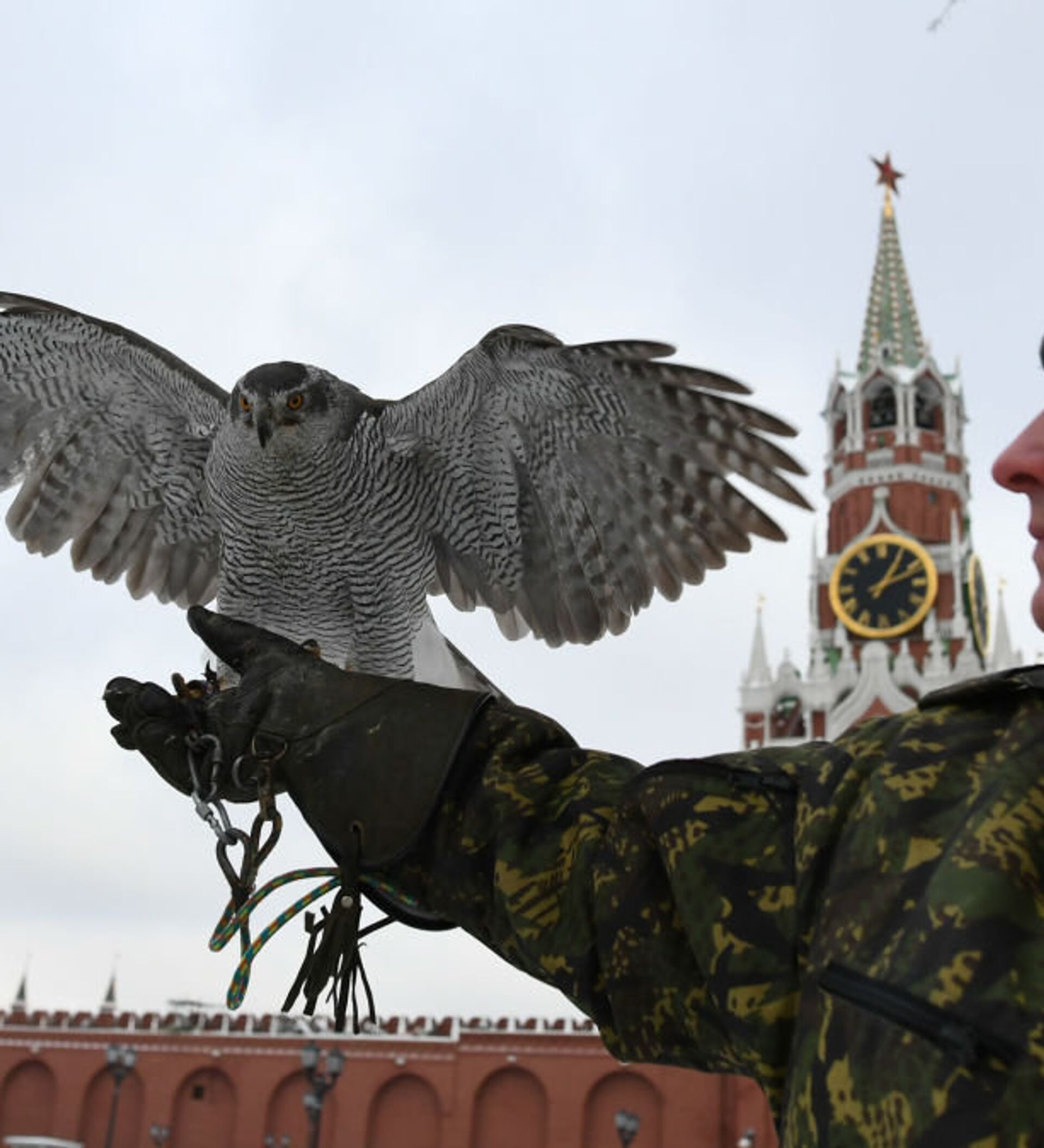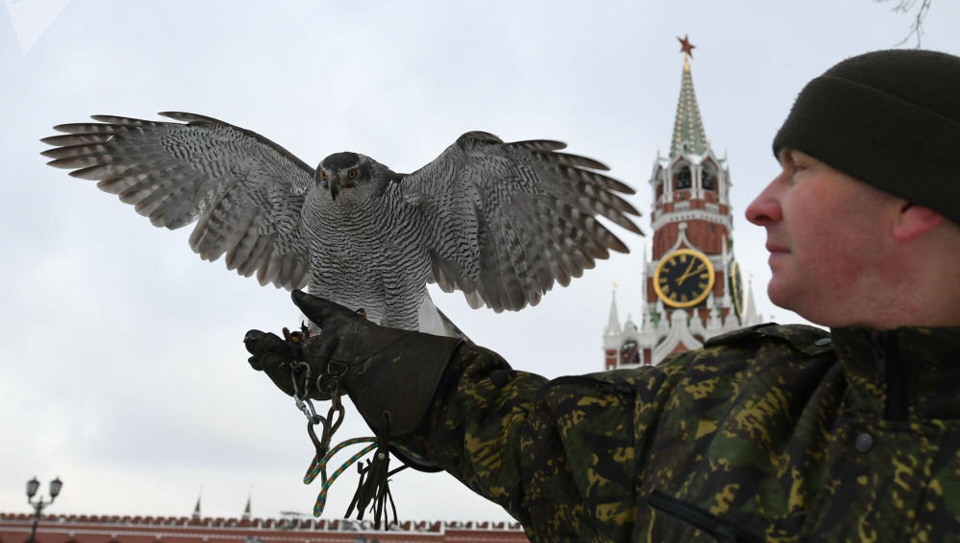 يستخدم مسؤولو الكرملين الصقور والنسور وحتى البومات، لتخويف طيور الغراب التي تفسد القباب الذهبية للمبنى في قلب موسكو. وعلاوة على ذلك، تقوم طيور حرس الكرمين باصطياد الطيور التي تغرد في الكرملين، وتلك التي "تضر" الزي الرسمي لحراس الكرملين.