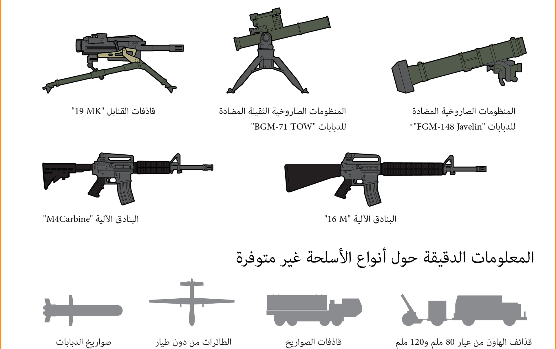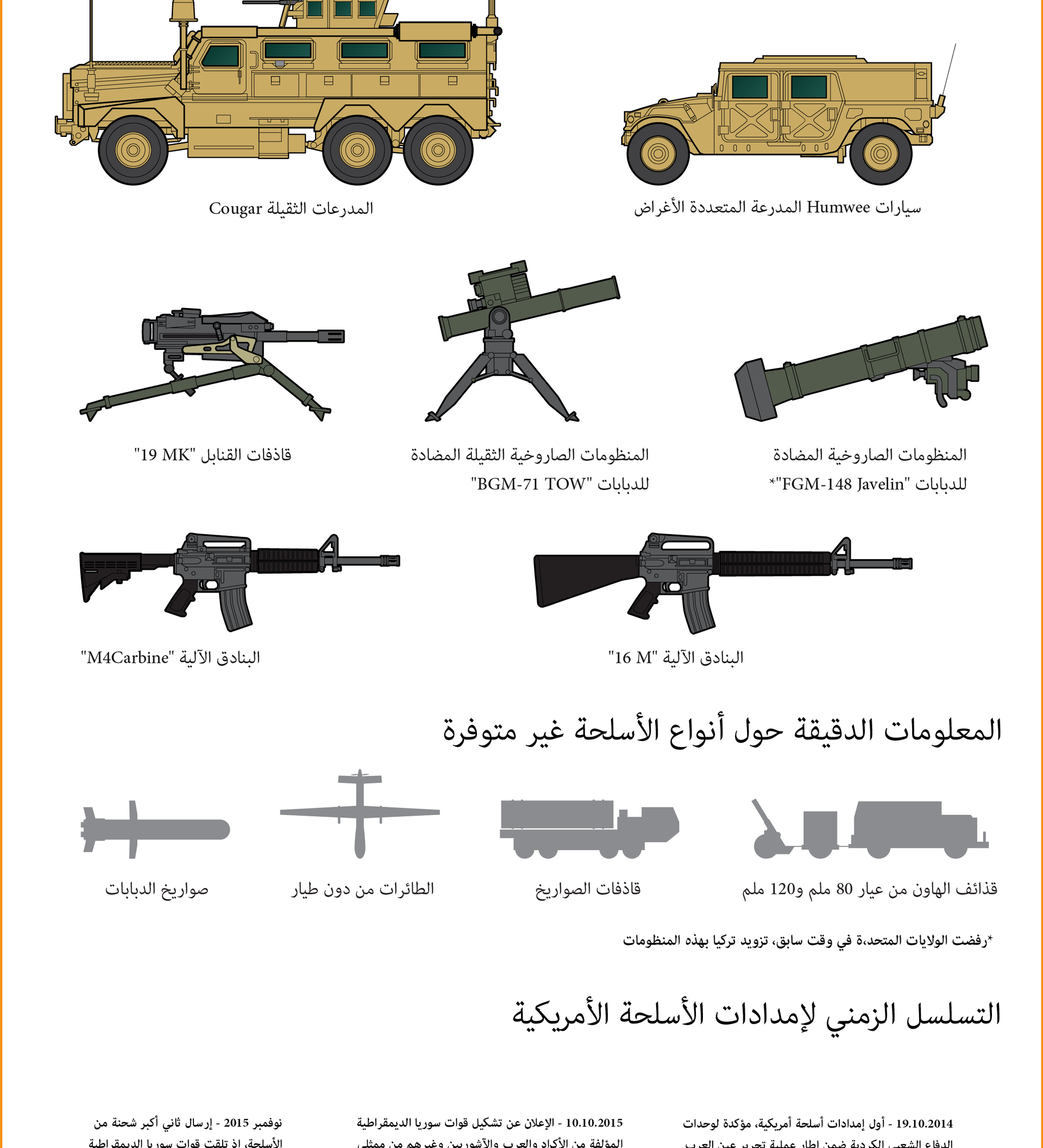 أنواع الأسلحة الأمريكية، التي تم تزويد وحدات حماية الشعب بها: