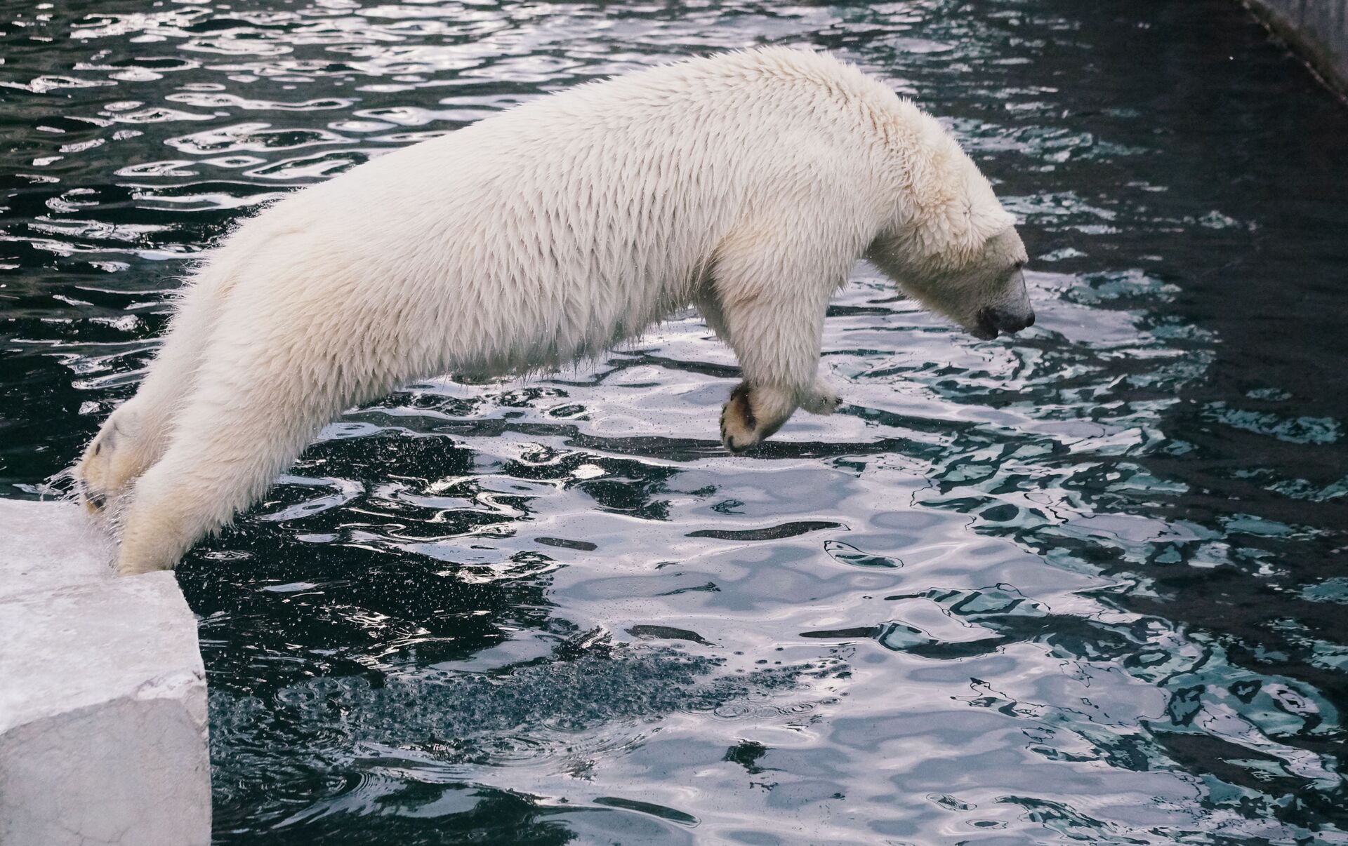 دب قطبي يقفز إلى الماء في حديقة موسكو للحيوانات - سبوتنيك عربي