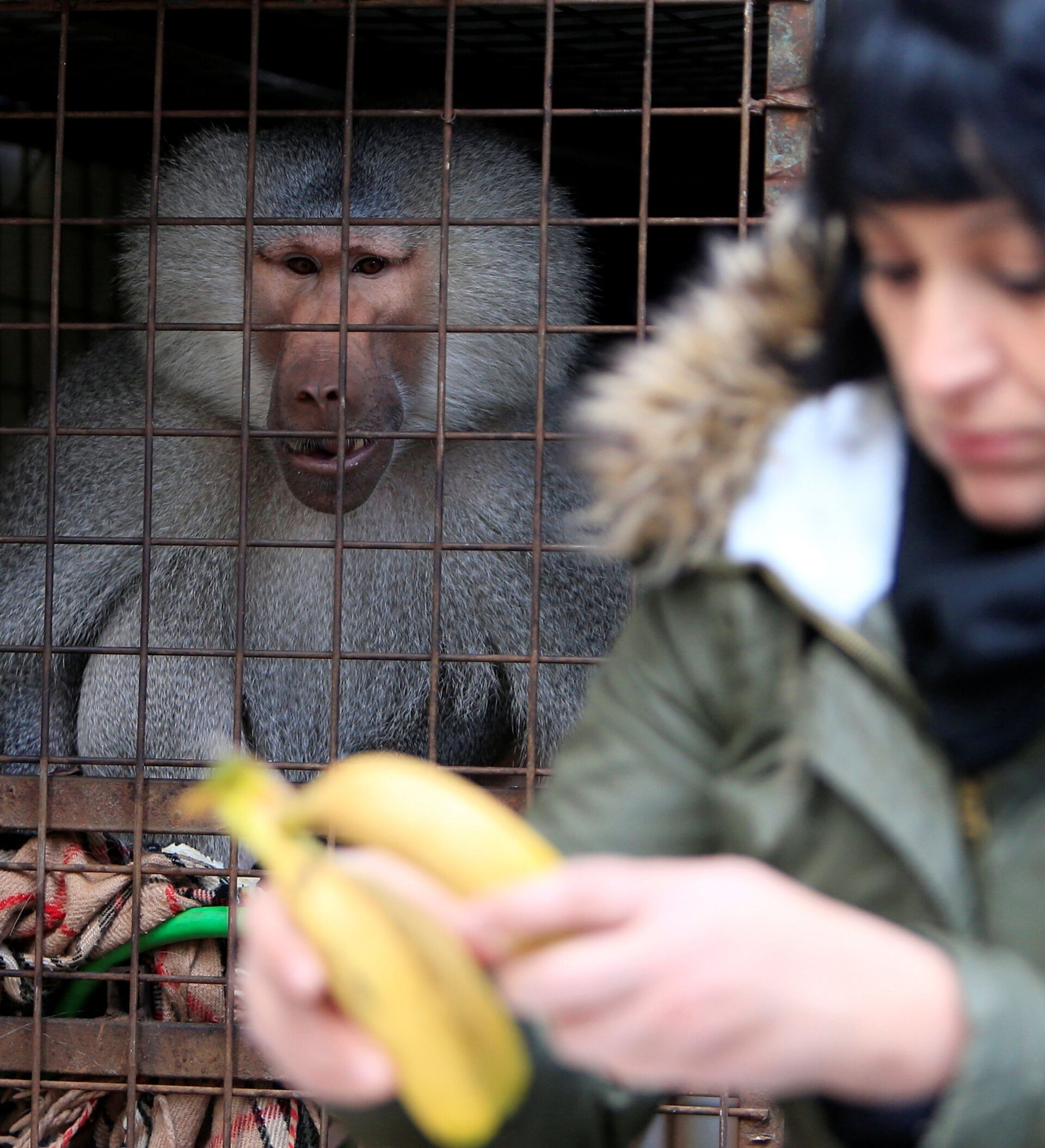 وقالت — باللهجة العامية — الناشطة المتطوعة لمساعدة الحيوانات لورا شتاينباخ، التي أنقذت مسعود وهو من فصيلة البابون، "ما في توعية للكلاب إنه الواحد يربي كلب ببيته، كيف بدهن يقدروا يربوا بابون؟ وهيدا كان محطوط بين الناس على الطريق العام، يعني حد جنينة الجماعة الناس يا اللي عندهم، ما عارفين شو بيأكل، شو بيعمل بالصقعة، بالبرد، هدا غلط".