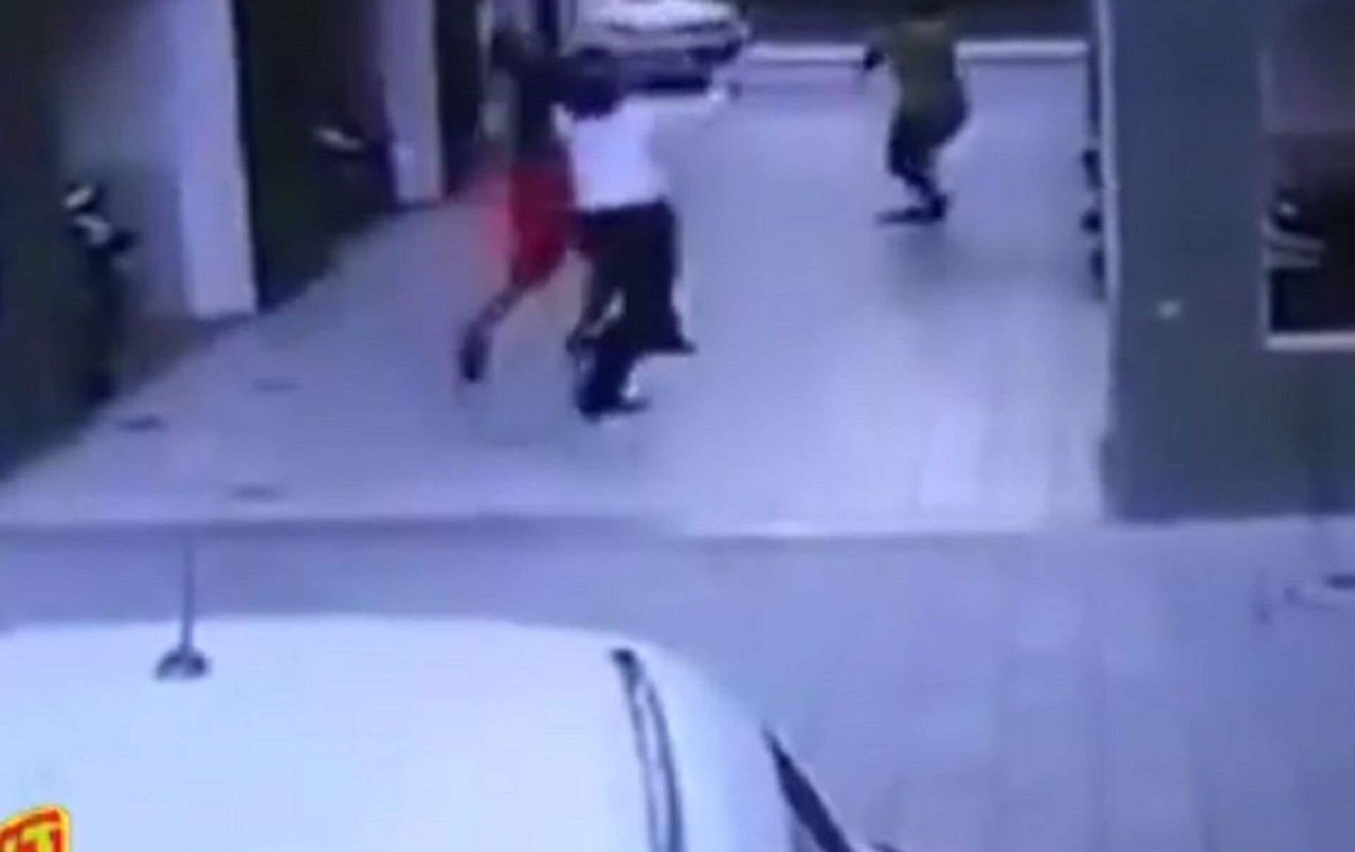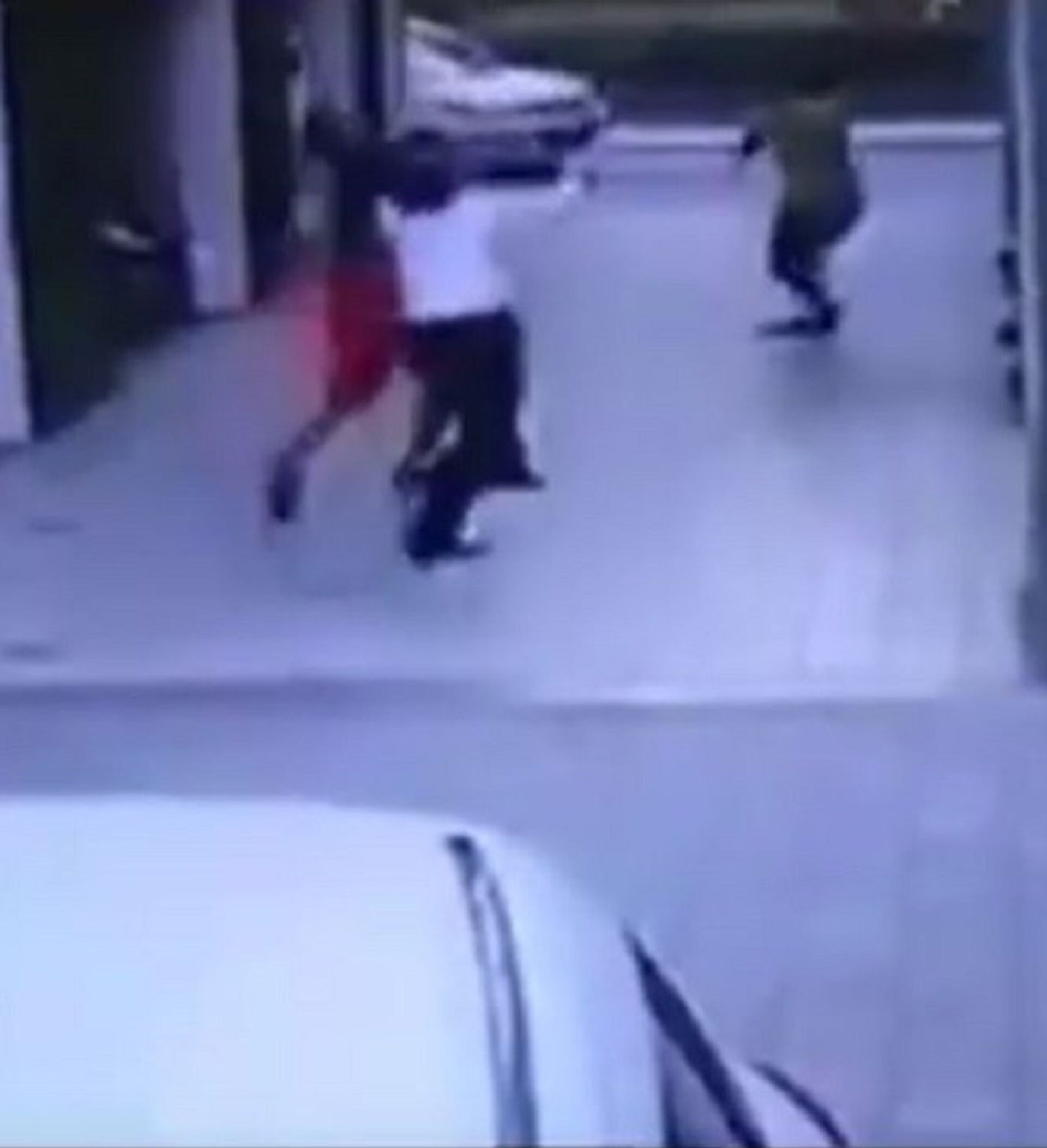 ويظهر مقطع الفيديو لحظة سقوط المرأة من الأعلى، ومحاولات المارة الفاشلة التقاطها.