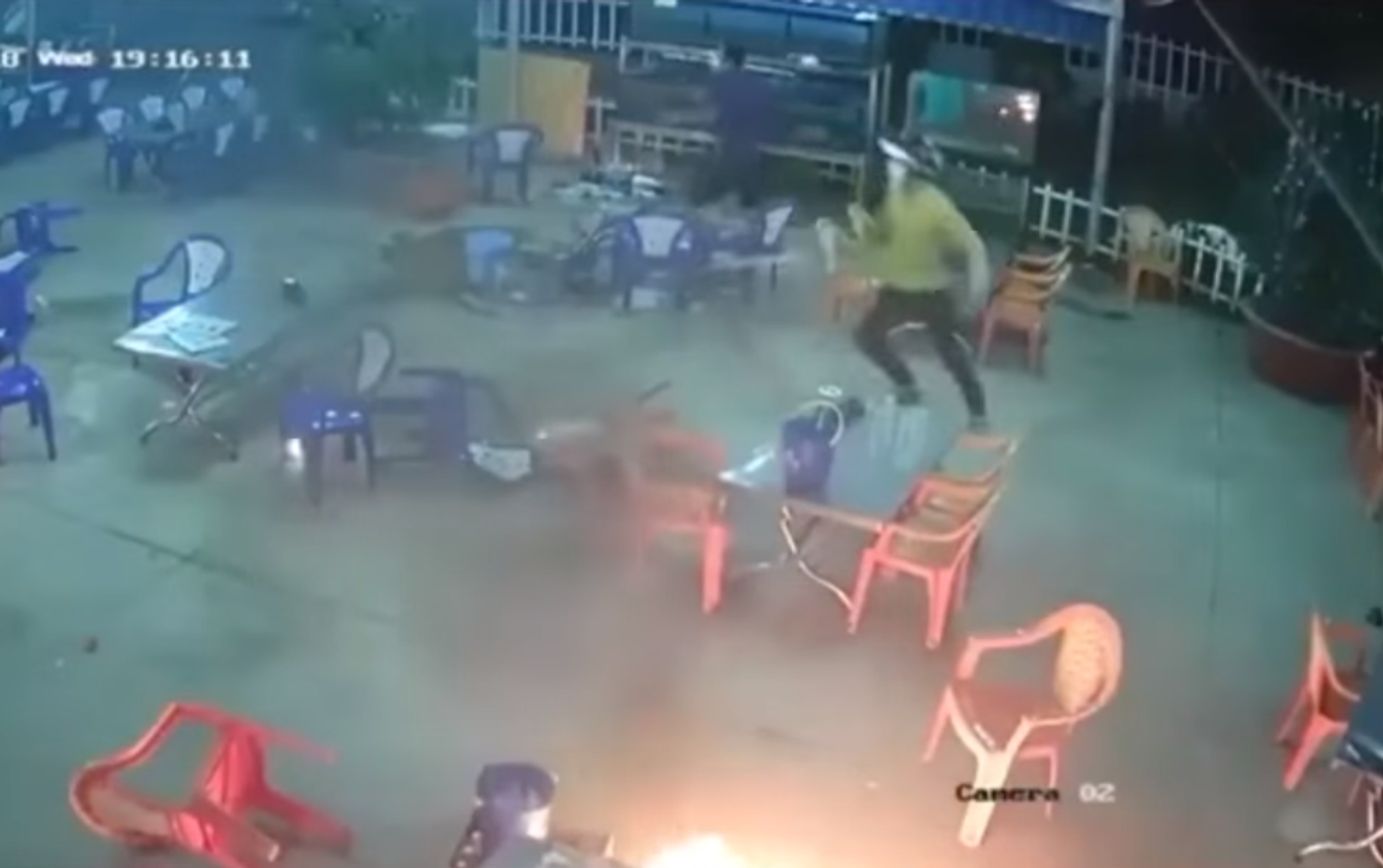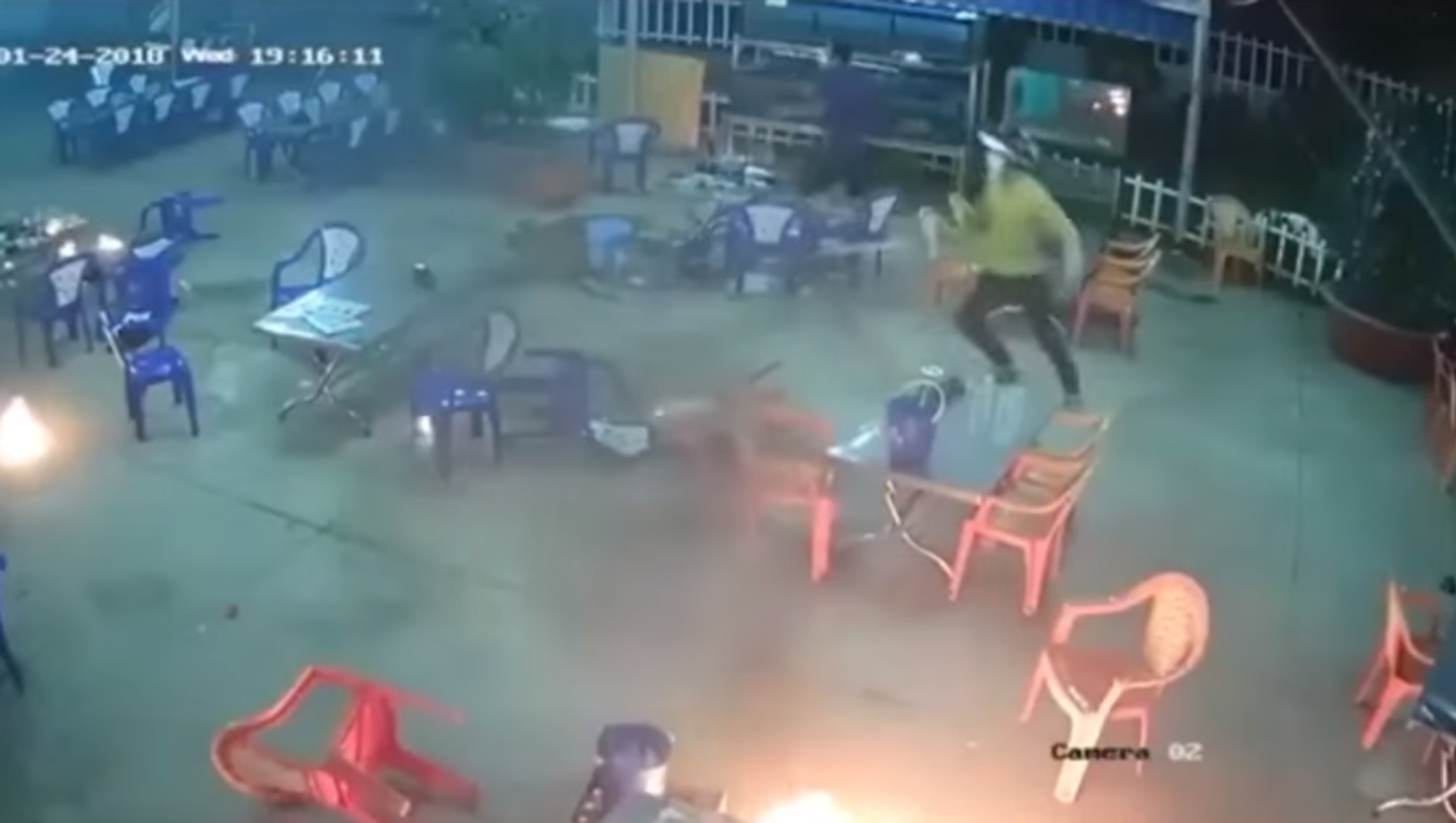 وثقت كاميرات المراقبة مهاجمة مجموعة من الشباب على دراجات نارية مقهى في مقاطعة باكان في شمال فيتنام.