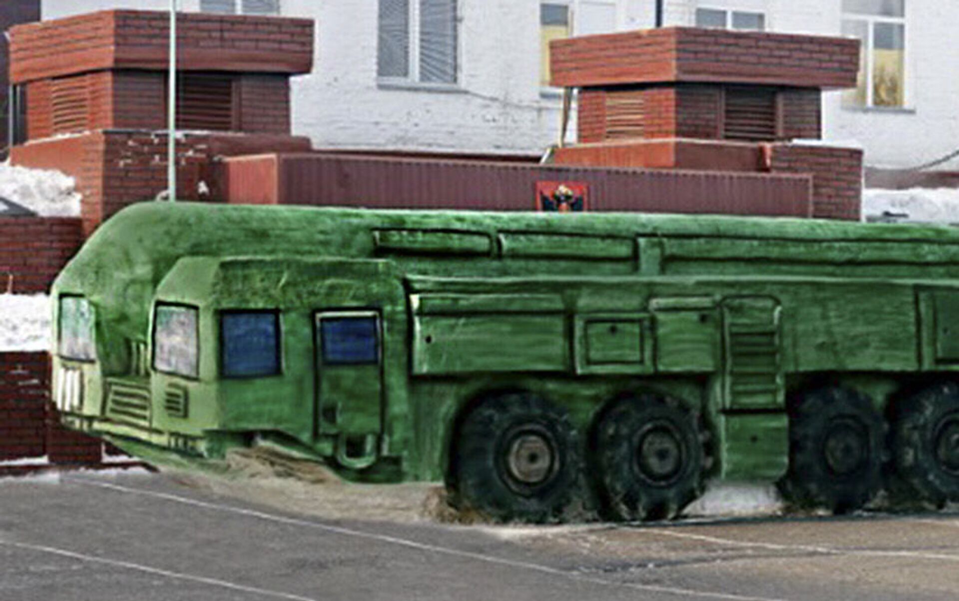 صنع معتقلو السجن رقم 6 في مدينة أومسك الروسية تمثالا ثلجيا على شكل منظومة الصواريخ العابرة للقارات "توبول-إم"، حسبما جاء على الموقع الرسمي للسجن.