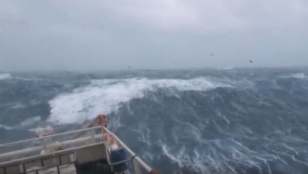 رصدت كاميرات المراقبة المتواجدة في مقدمة إحدى السفن، مقطع فيديو لسفينة وهي تصارع الأمواج بشكل خطير في بحر الشمال. 12.02.2018, سبوتنيك عربي